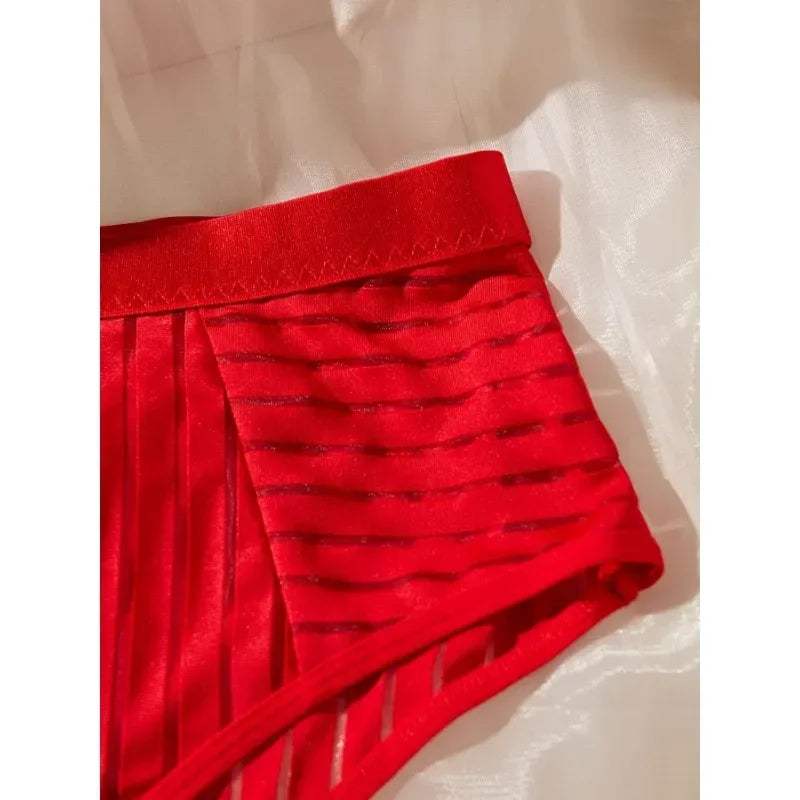 Indulge in the ultimate form of self-love with our lingerie set. Made with soft, breathable polyester, this set features a playful striped design that will make you feel confident and sexy. Give yourself the gift of luxury and embrace your sensual side.