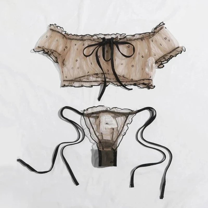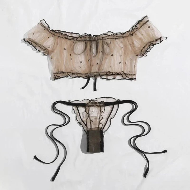 Add a hint of romance to your wardrobe with our lingerie set. Made from a mix of soft cotton and polyester, this floral set includes delicate ruffles for added charm. Perfect for date nights or special occasions, this lingerie set will make you feel confident,