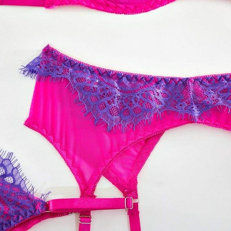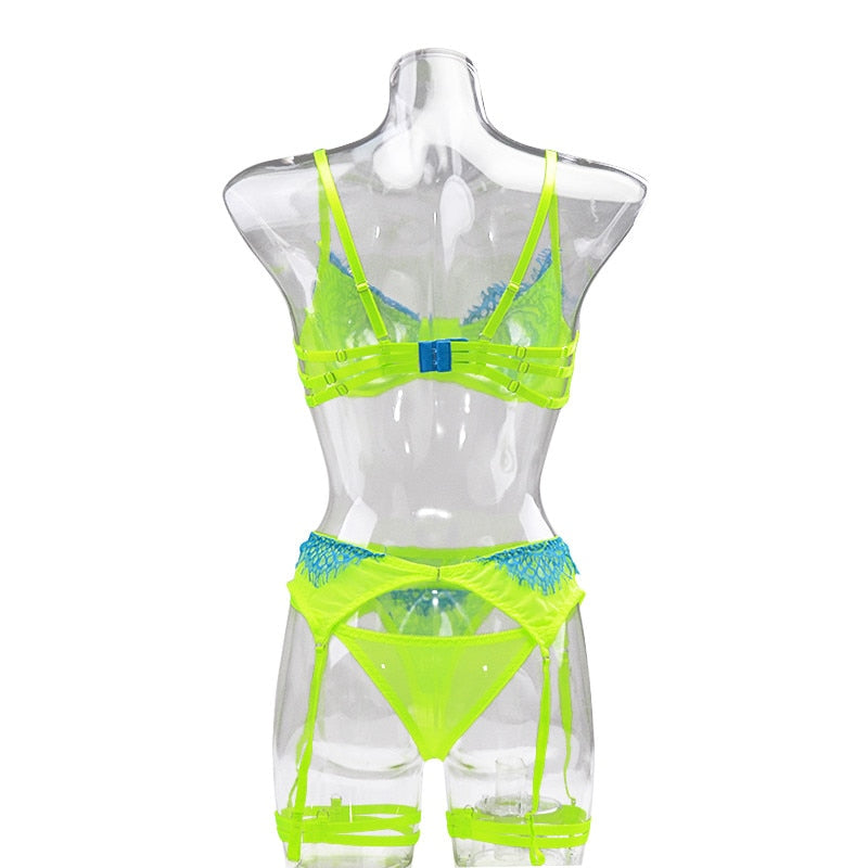 This sexy set of lingerie has soft, yet supportive, cups and a lace-trimmed neckline that will keep her looking great from the first wear all the way to the last. With a chic neon color that looks great with a variety of other items, this is the perfect lingerie set for her wardrobe.