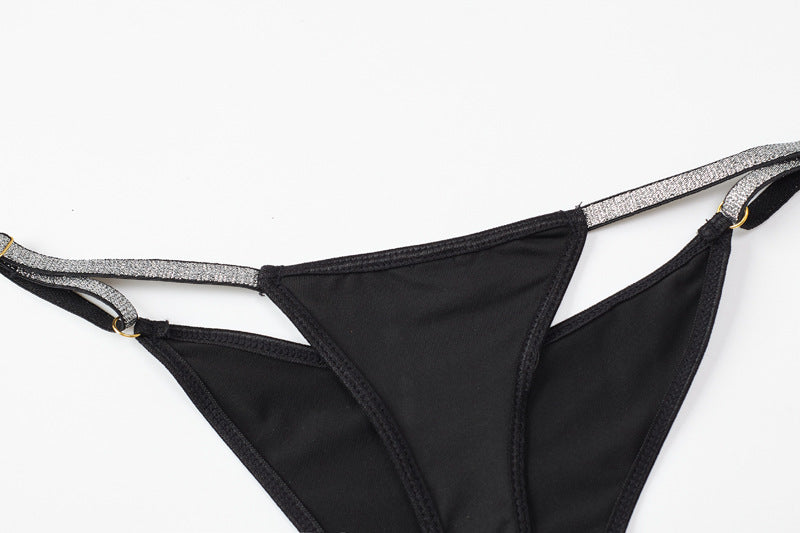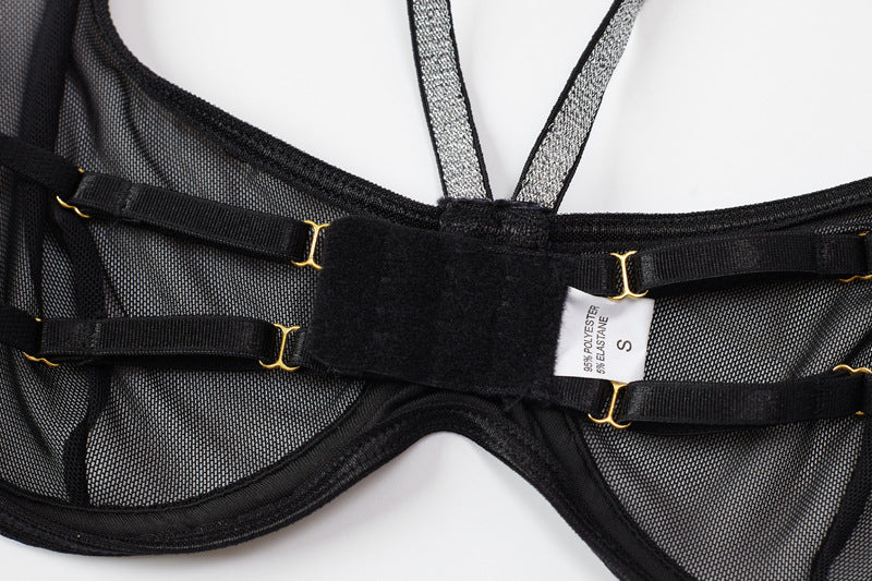 This lingerie set is perfect for your next romantic evening. It's black, comfortable, and simple. It has a back closure, which is perfect for any type of body.