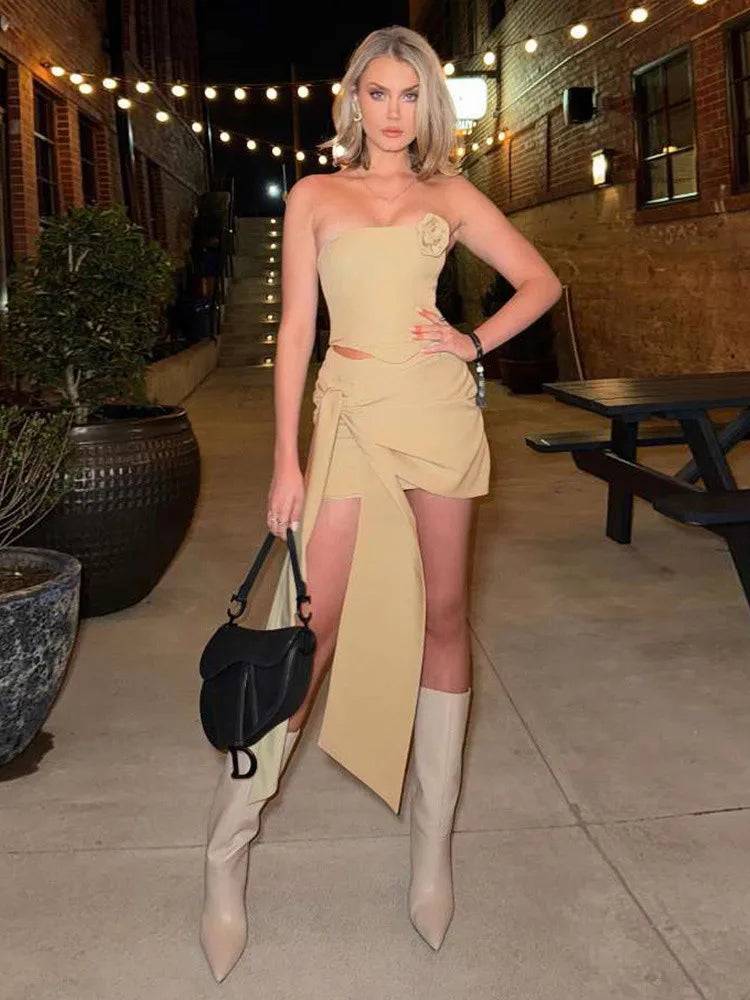 Revive your wardrobe with our skirt set! Its solid design and spandex fabric ensure a figure-flattering fit while the sleeveless top keeps you cool. Perfect for a day out or a night on the town. Style and comfort, all in one!