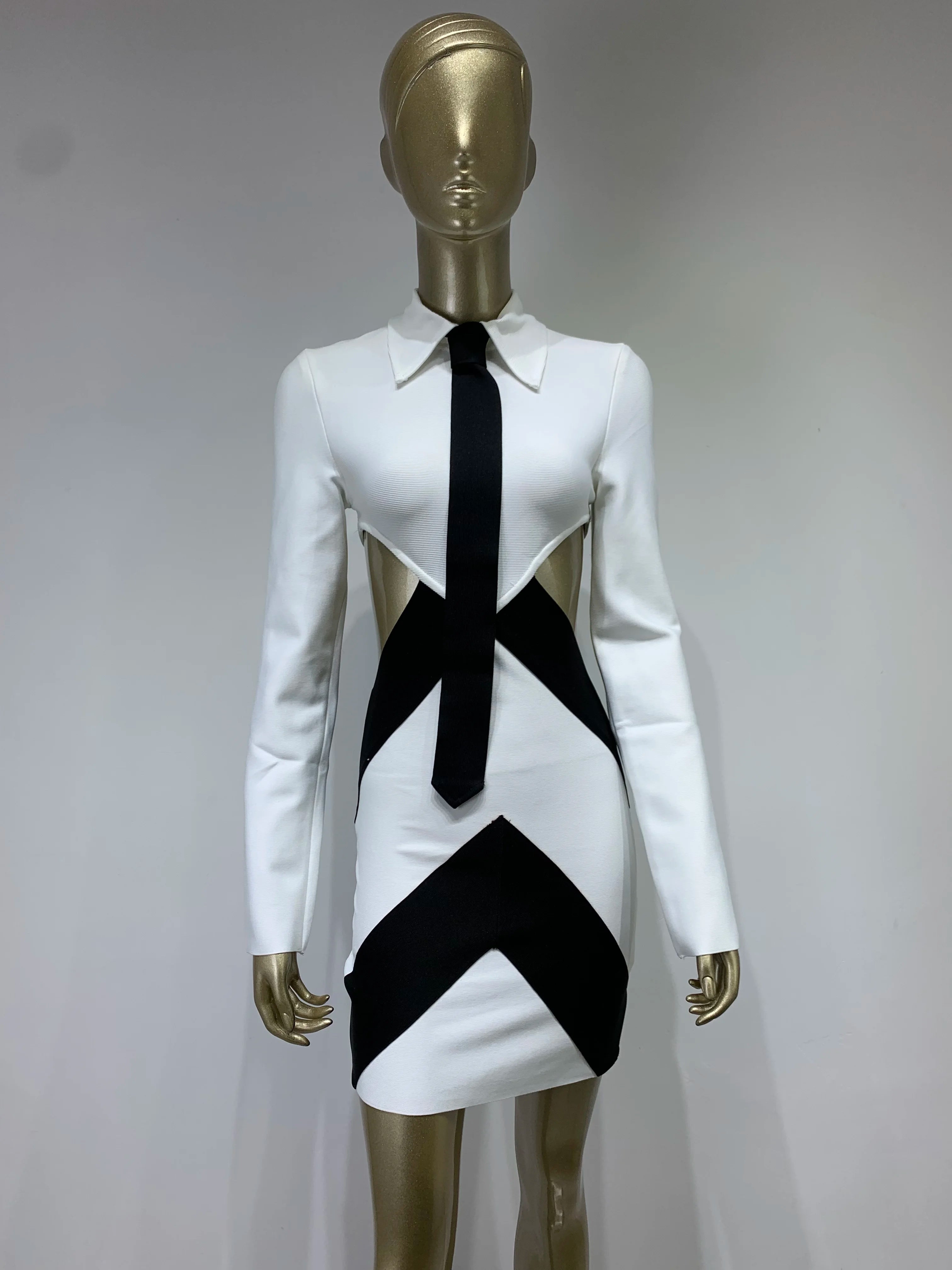 Discover your new go-to dress with Be My Escape. Featuring a slim fit and sheath silhouette, this mini dress accentuates your shape while the notched neckline adds a touch of sophistication. The patchwork pattern and hollow out details add a sexy and playful touch. Crafted from a blend of polyester and spandex, this dress offers comfort and style in one.