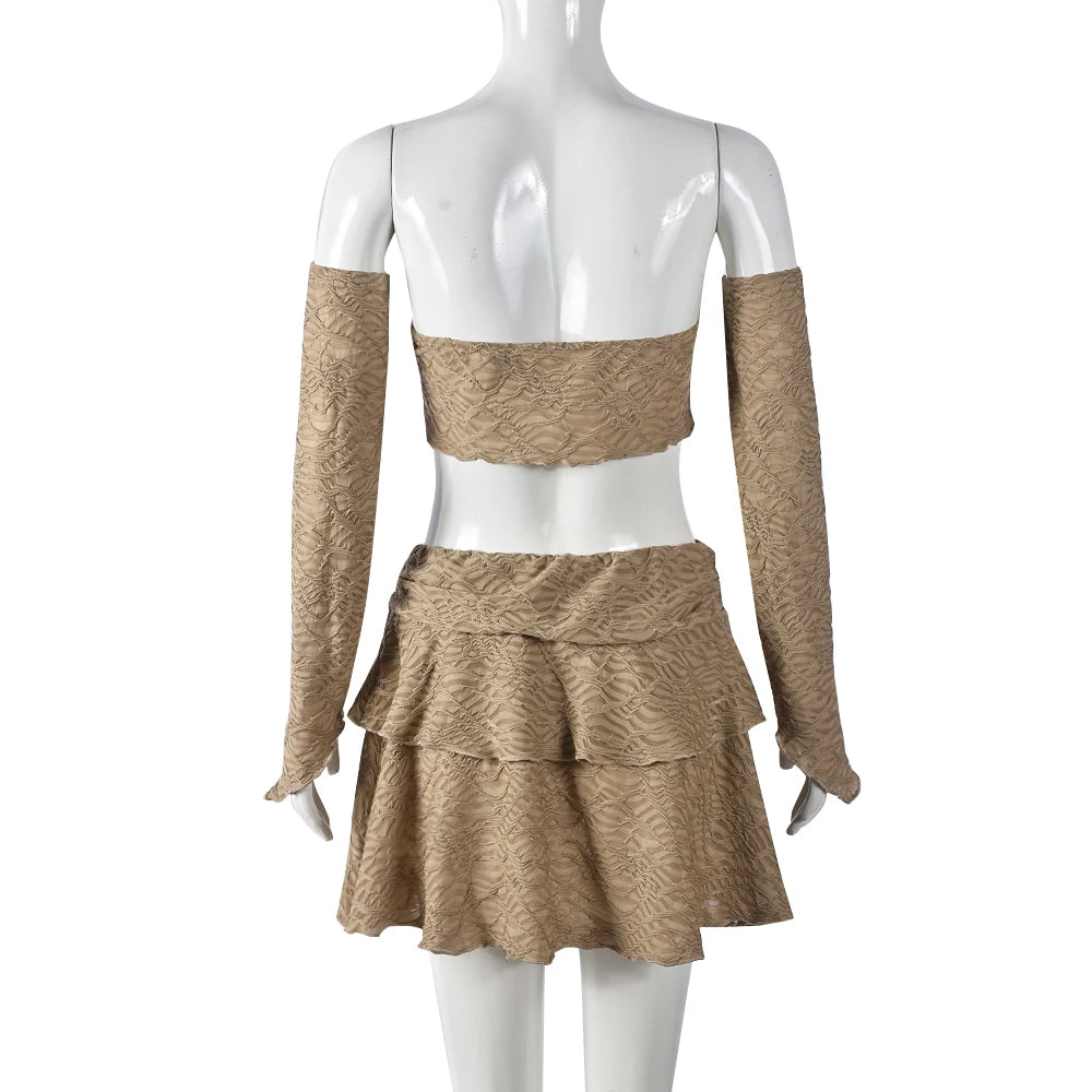 This Broken Arrows Skirt Set is made of a comfortable blend of cotton and polyester. The strapless collar and single breasted closure create a sleek and modern look. The solid pattern and A-line silhouette flatter any figure, while the full sleeves and above knee skirt length add a touch of elegance. Perfect for any occasion.