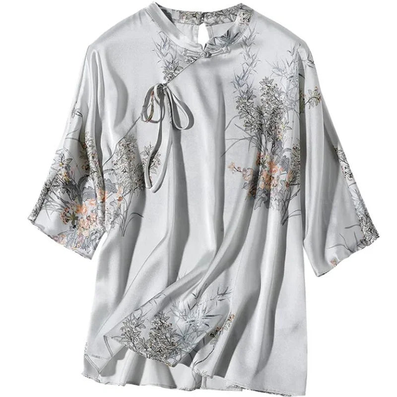 Be happier in the Make You Happier Blouse! Made of comfortable acetate material and featuring a beautiful print, this regular fit blouse will make you feel confident and stylish. With petal sleeves and a standard thickness, it's the perfect addition to any wardrobe.