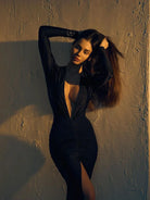 Bloom Harmony Long Dress Unleash your boldest self in this striking long dress that commands attention. Crafted from a premium blend of cotton, polyester, and elastane, this piece moves with you while maintaining its shape through every daring moment. The flattering V-neckline adds an edge of sophistication and allure, perfect for those ready to make a statement.