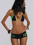 Embrace bold comfort with the Brave Little Storm Shorts Set. Crafted from stretchy spandex and durable polyester, this set features a halter collar and a sleek printed design, making it stand out with fearless style. Perfect for those ready to take on any challenge with daring flair.