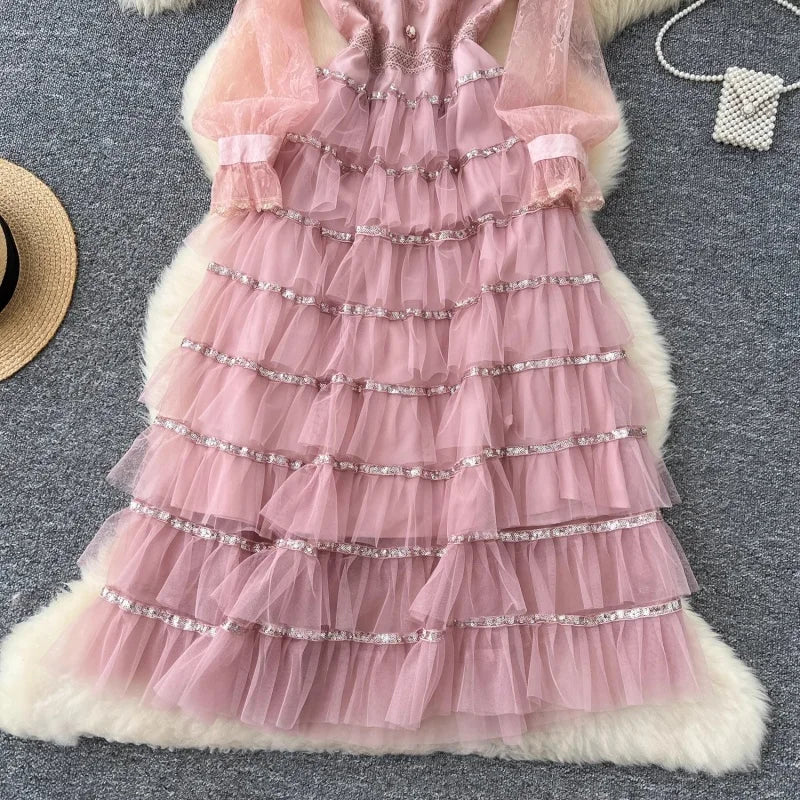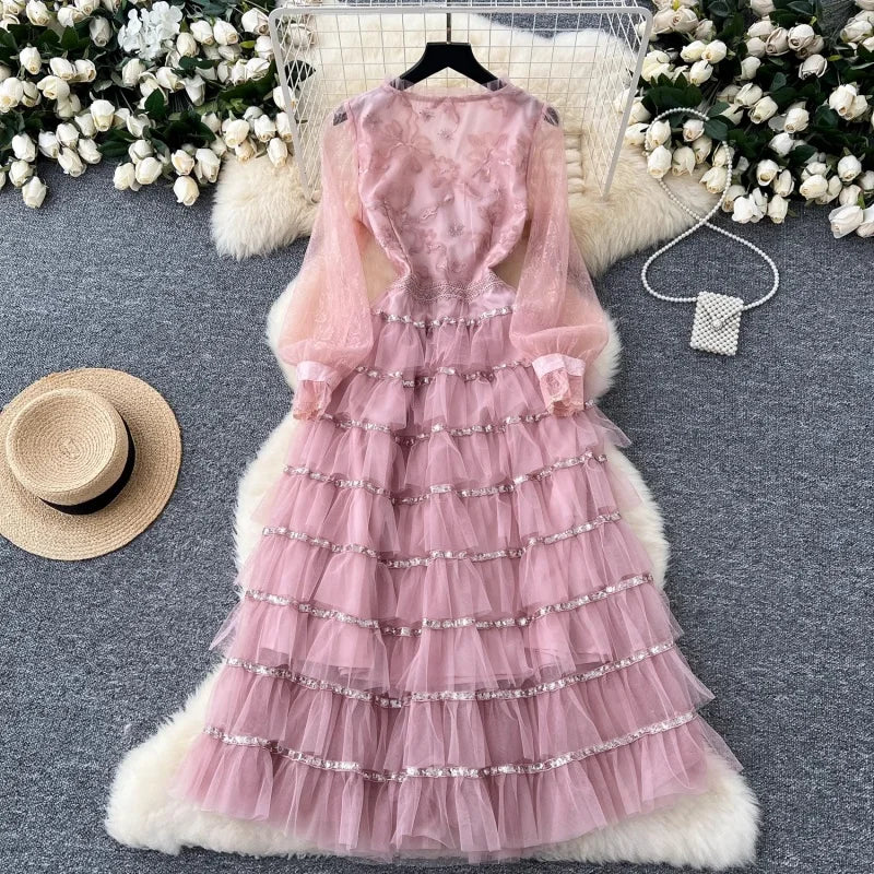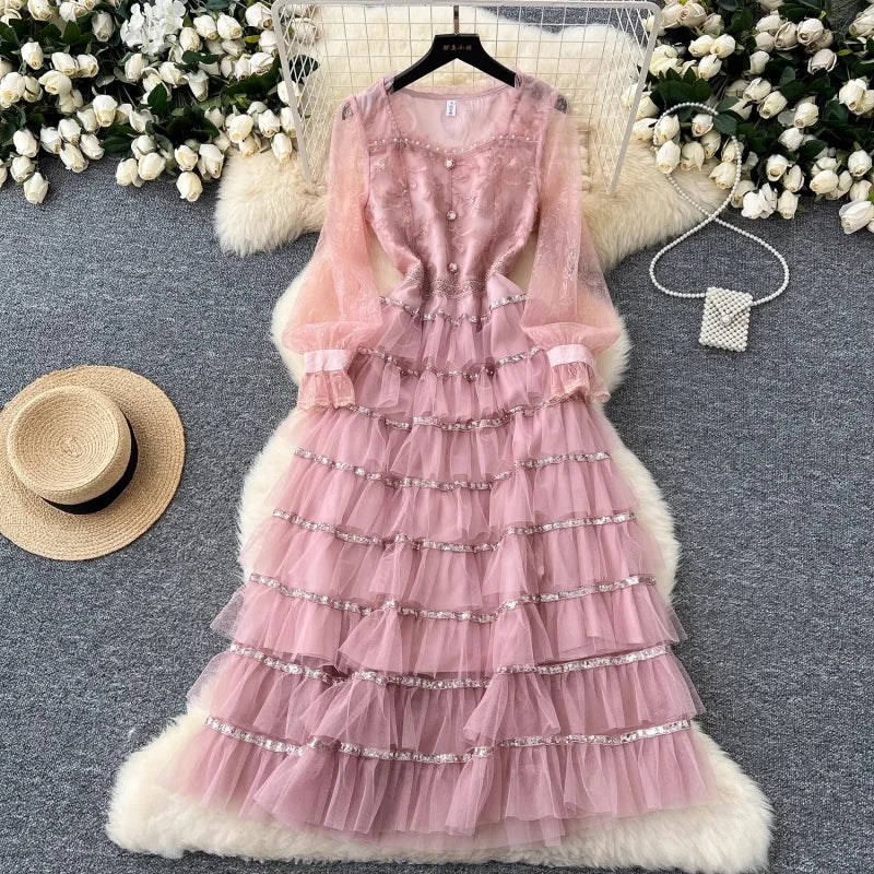 Elevate your wardrobe with the Getting In Pink Midi Dress. Featuring an A-Line silhouette, this dress is both flattering and comfortable. The intricate beading and sequin details add a touch of glamour, while the mid-calf length and cotton-polyester-mesh material make it perfect for any occasion.