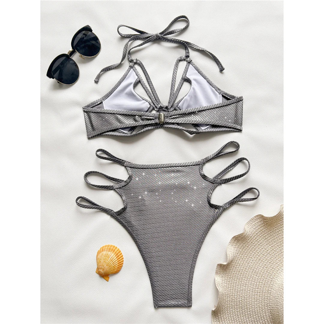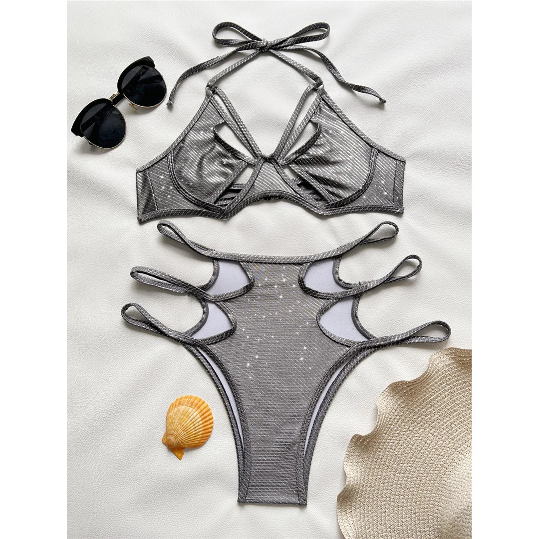 Get ready to shine in our Glitter Tide Bikini! Made with a blend of polyester and spandex, this swimsuit offers a comfortable and flattering fit. The solid pattern and wire-free support make it perfect for any beach or pool day. Look and feel your best with this glamorous bikini!