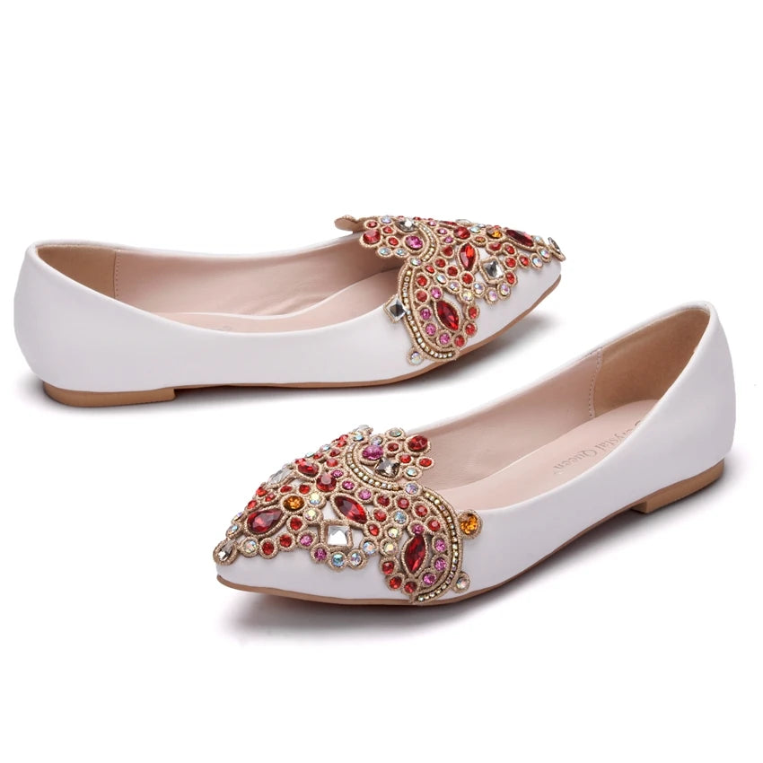 Indulge in the luxurious comfort and style of Melody Of My Heart Flat Shoes! Crafted with a pointed toe and slip-on closure, these flats are designed to elevate your fashion game. The crystal fashion element adds a touch of elegance, while the rubber outsole provides ultimate comfort.