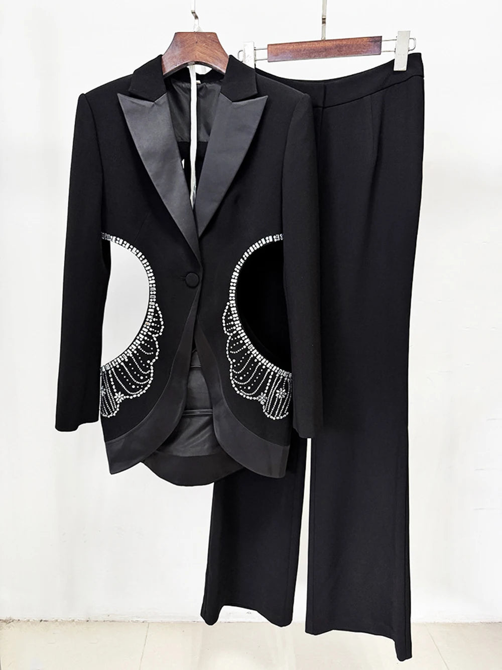 Elevate your style with the Miserable At Best Pant Set, crafted from stretchy spandex and smooth polyester for a flawless fit. This solid-colored two-piece features a daring backless design accented by sparkling diamond details, perfect for making a bold, unforgettable statement. Embrace confidence and allure in this striking ensemble.