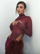 Seduce with every move in this fearless two-piece set featuring a sleek bodysuit paired with a ruffled skirt that demands attention. The voluminous ruffles add dramatic flair and movement, while the fitted bodysuit creates a striking contrast that accentuates your silhouette. This combination delivers edge and elegance in one intoxicating package.