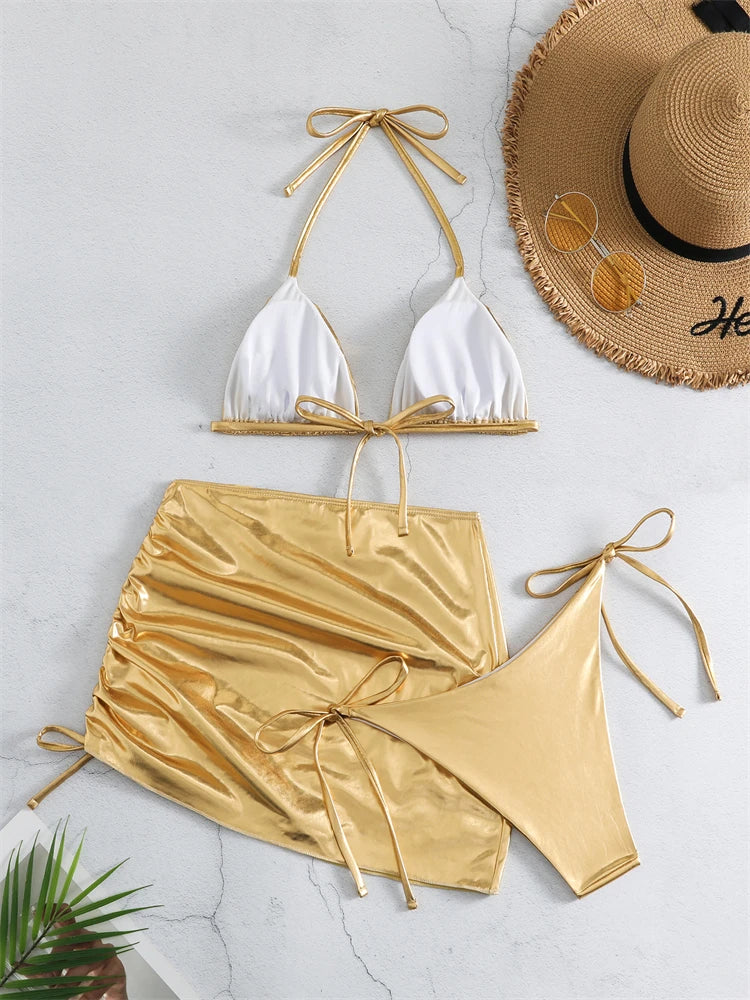 Upgrade your beach game with the Shine On Me 3Pcs Bikini Set! Made of high-quality polyester and spandex, this set features a solid pattern and wire-free support for ultimate comfort. With a high-waisted design, this bikini set flatters your waist while providing optimal coverage. Get ready to shine in style!