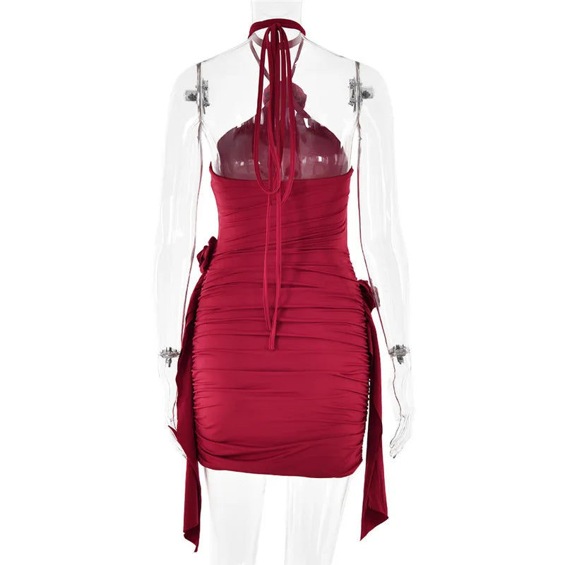 Indulge in the luxury of this mini dress! Made with polyester and spandex, this solid dress is perfect for a night out. The backless design adds a touch of elegance and sensuality. Give yourself the gift of confidence and style with this must-have mini-dress!