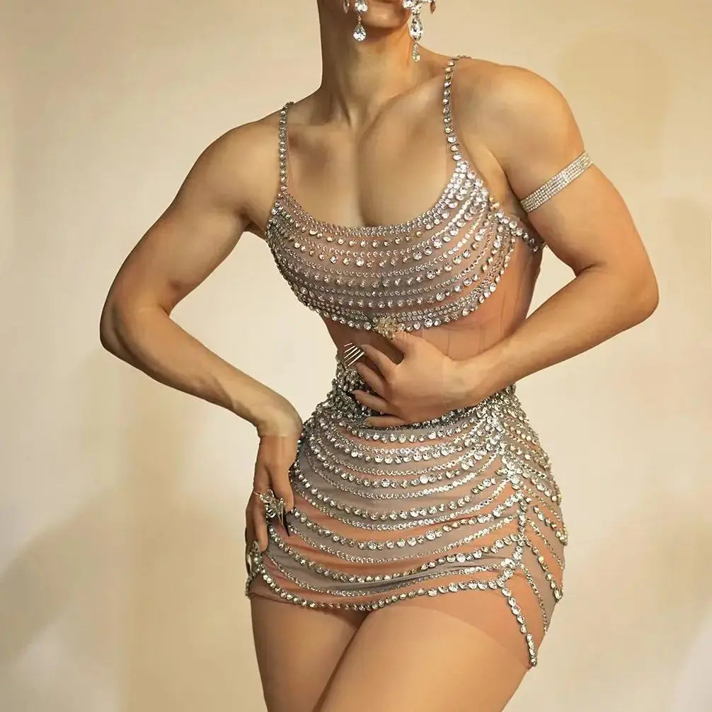 Unleash your inner sparkle with our Staying The Night Mini Dress! Made from luxurious rayon and adorned with dazzling rhinestones, this sleeveless dress boasts spaghetti straps that accentuate your figure. Perfect for a night out, this dress will make you shine with confidence and style!