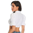 The White Lie Sin Crop Top features daring puffed short sleeves crafted from smooth polyester, combining bold style with a flattering silhouette. This standout piece is designed to elevate your look with a fearless touch of drama.