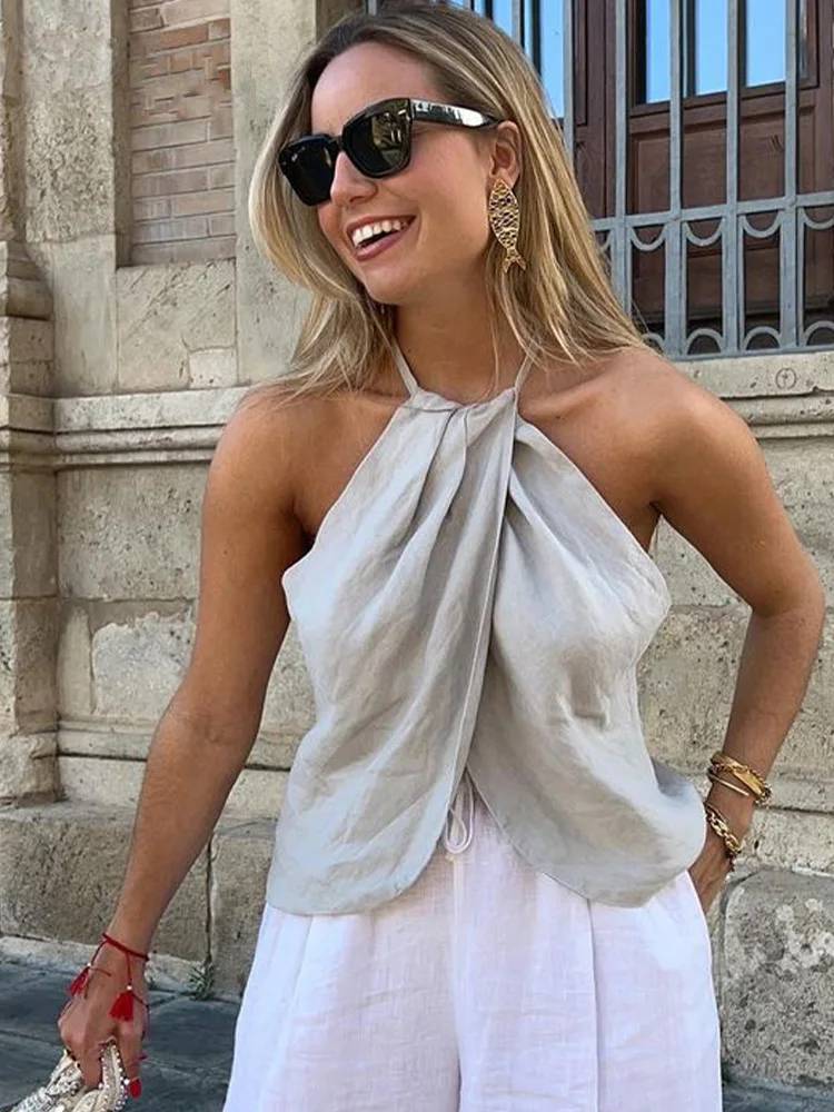 Transform your wardrobe with our pant set! Made of linen, this solid set features shirring details for a flattering fit. Perfect for date nights or a day out, make a statement in this must-have outfit!