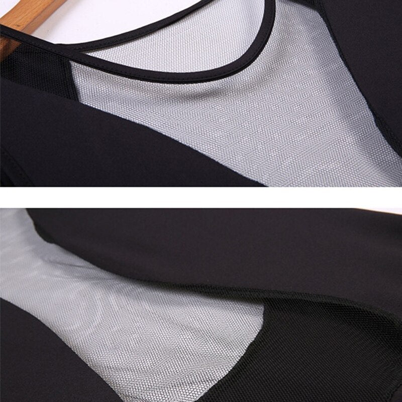 Mini vestido negro ajustado sin mangas con decoración transparente