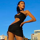 If you're looking for a fun, flirty, and fashionable dress to show off your body, this is the dress for you. The stretchy spandex fabric hugs your curves and accentuates your waist. It features a short length, so it's perfect for a date night or party. The hollow out and ruches on the front of the dress are eye-catching and fun.