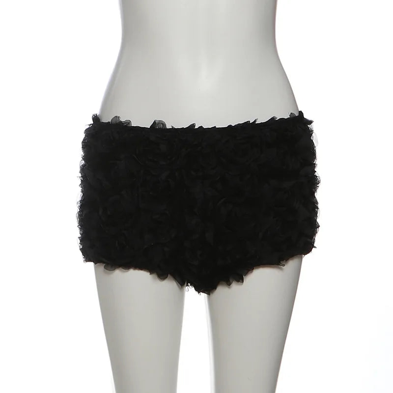 Fire Looks Feminine Shorts Ignite your style with these bold, daring shorts designed for those who refuse to play it safe. Crafted from a premium polyester and elastane blend, they deliver a sleek fit that moves with you while maintaining its shape. Adorned with striking floral embellishments, these shorts make an unapologetic statement—perfect for turning heads and commanding attention.