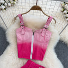 Choose a pair of denim skirts that complement a wide variety of looks. These stylish and versatile styles have been crafted to blend with a variety of other items. The trendy pink gradient coloring is a great choice for a variety of looks. Cute and comfortable, these skirts are ideal for any casual wardrobe.