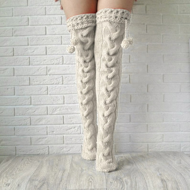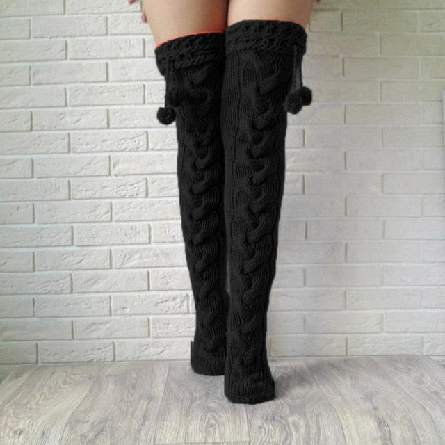 Calcetín de patrón geométrico con decoración de pompones