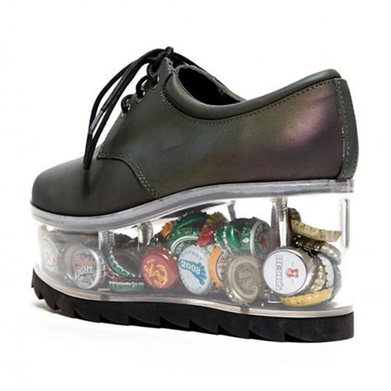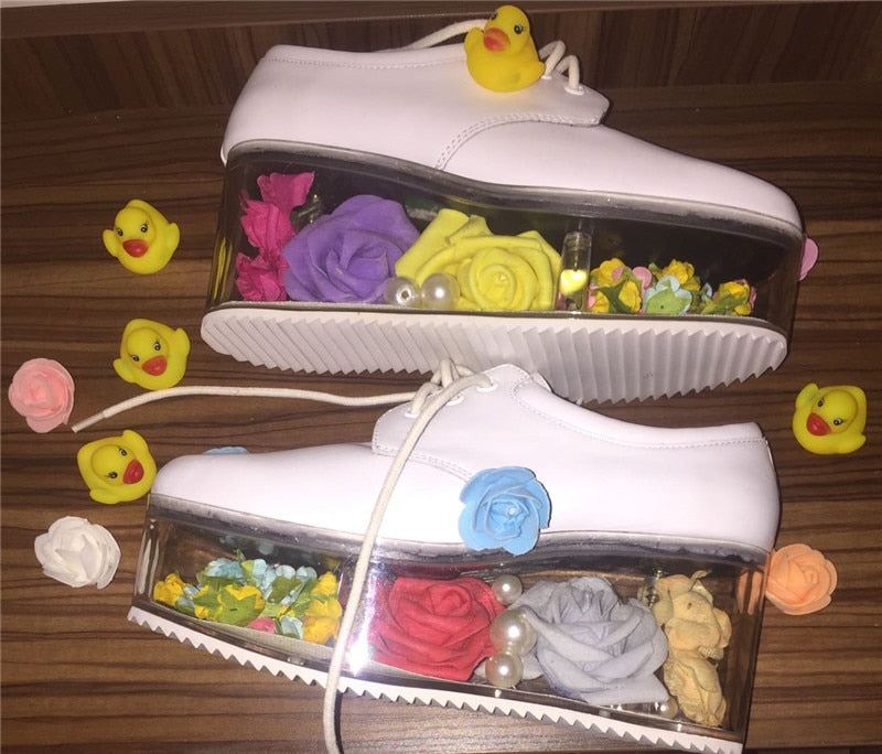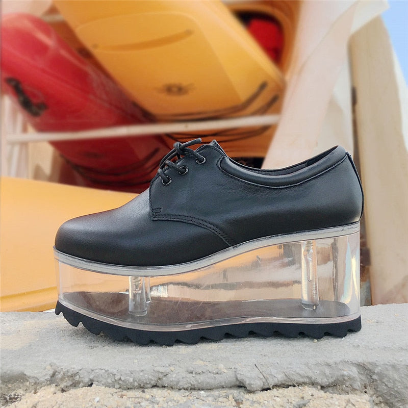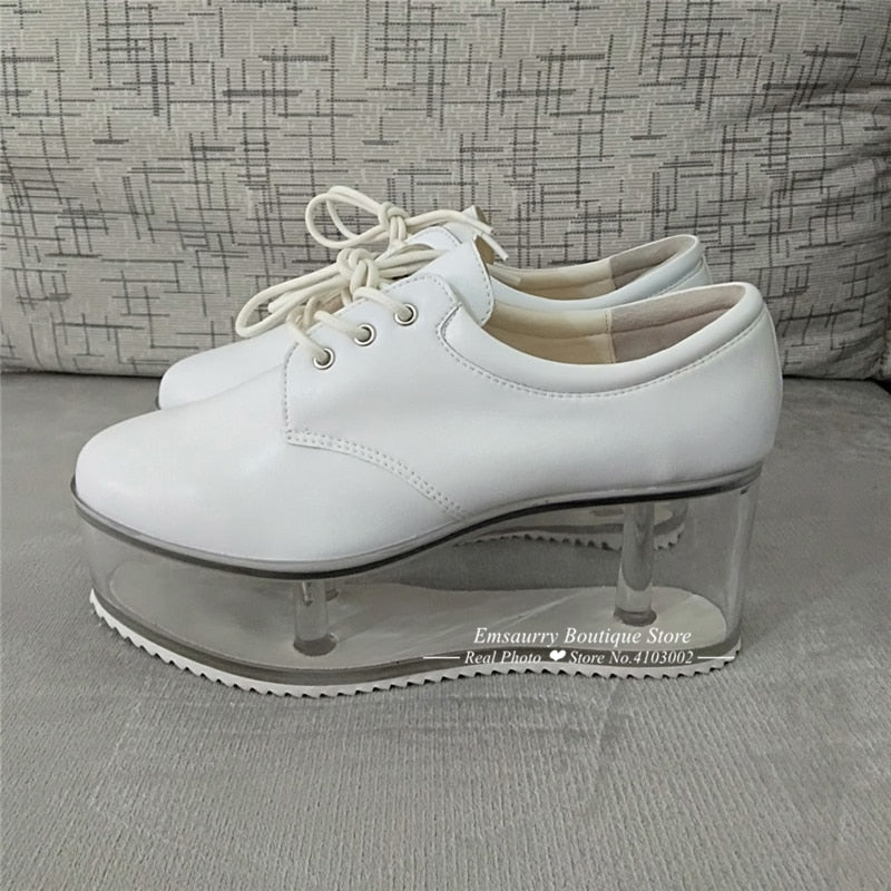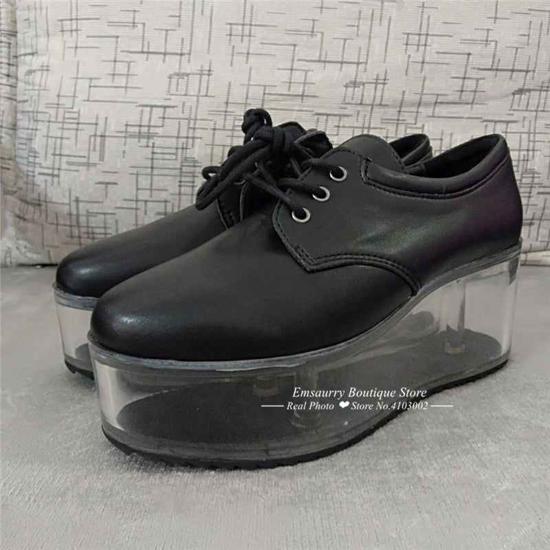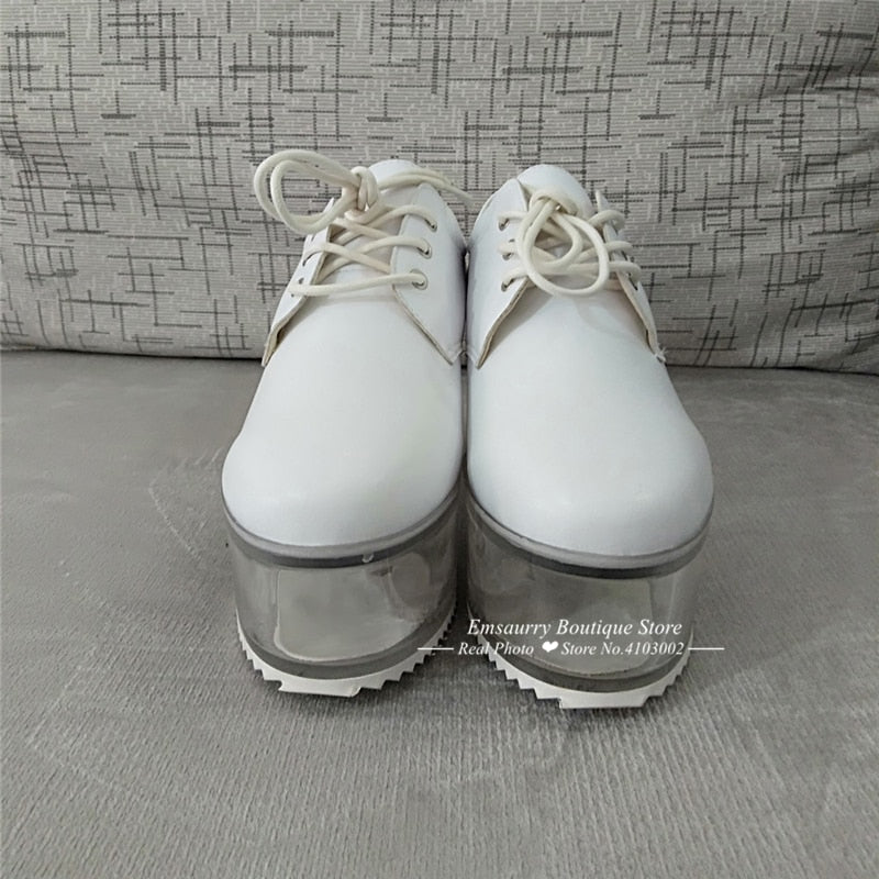 <transcy>Ocio Plataforma plana transparente Hueco Tacón transparente Zapatos de mujer atados cruzados</transcy>