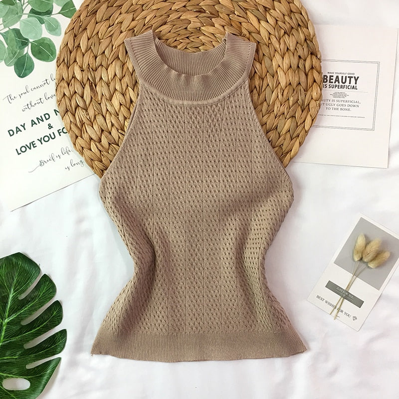 Knitted Solid Pattern Camis Sleeveless Crop Tee Shirts. These crop tee shirts are designed with a loose, casual fit and can be worn for a multitude of occasions. With a light, fluid design, these camis are comfortable and stylish.