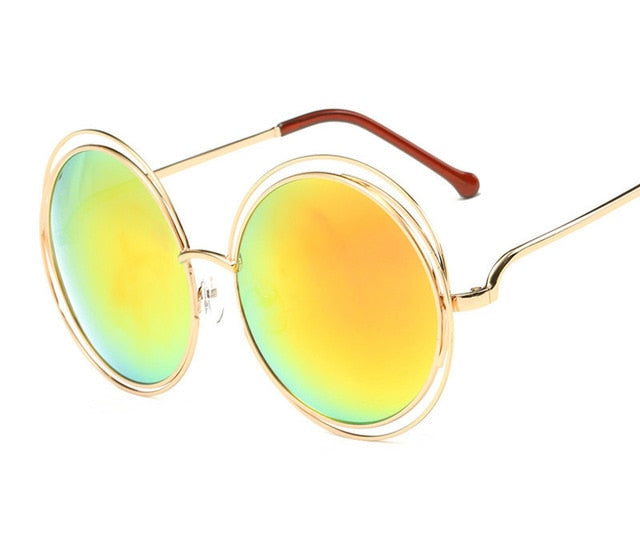 Gafas de sol redondas con lentes de espejo UV400 con montura de plástico