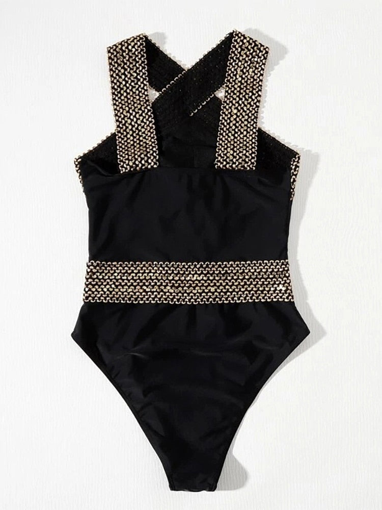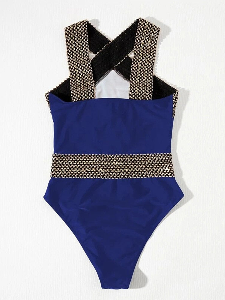 This one piece bikini is perfect for any summer occasion. The halter neckline makes it easy to adjust the fit. The bikini is made of a solid material, perfect for keeping you cool.