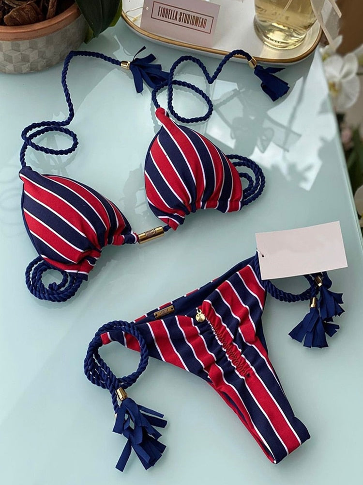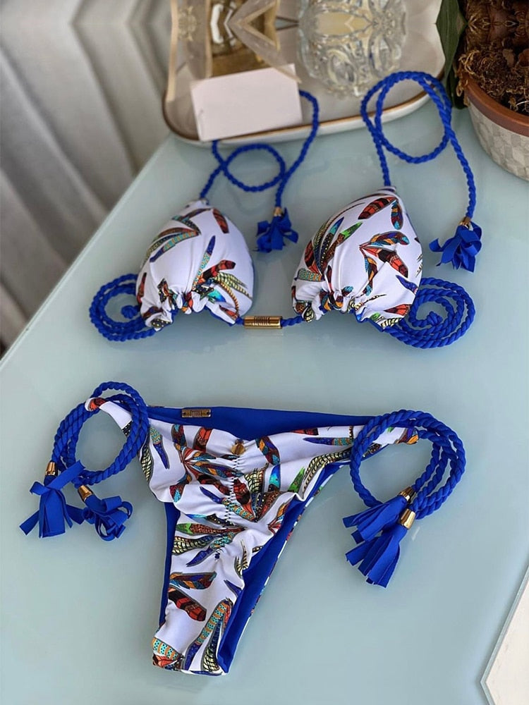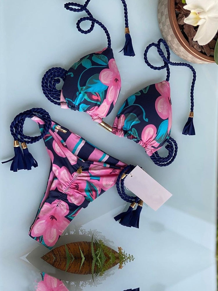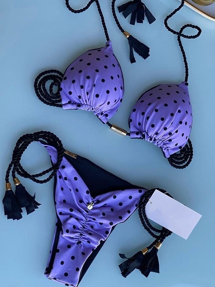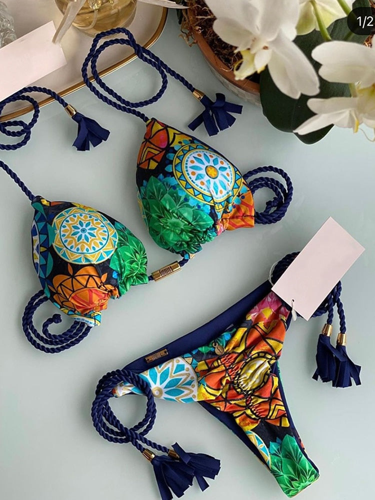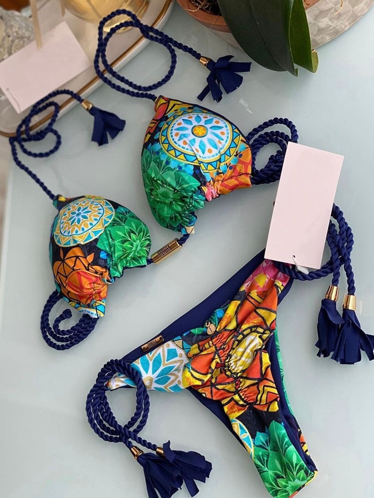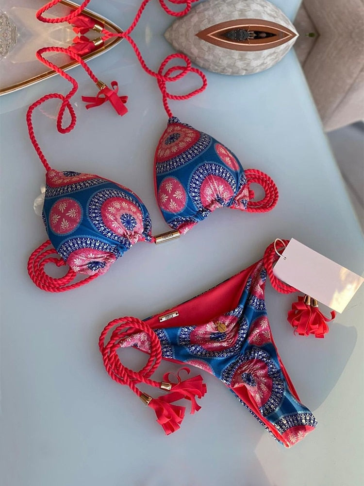 Karma's Gonna Track You Down Two Piece bikini offers a stylish, printed pattern and charming style. This two-piece is perfect for beach fun and pool lounging. Crafted with unparalleled attention to detail, the bold design and quality materials offer durability and comfort in any setting.