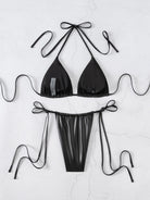 This daring two-piece set combines sleek polyester and stretchy spandex for a comfortable, figure-flattering fit. Its solid pattern and wire-free support offer freedom of movement and bold style, perfect for making a confident statement wherever you go.