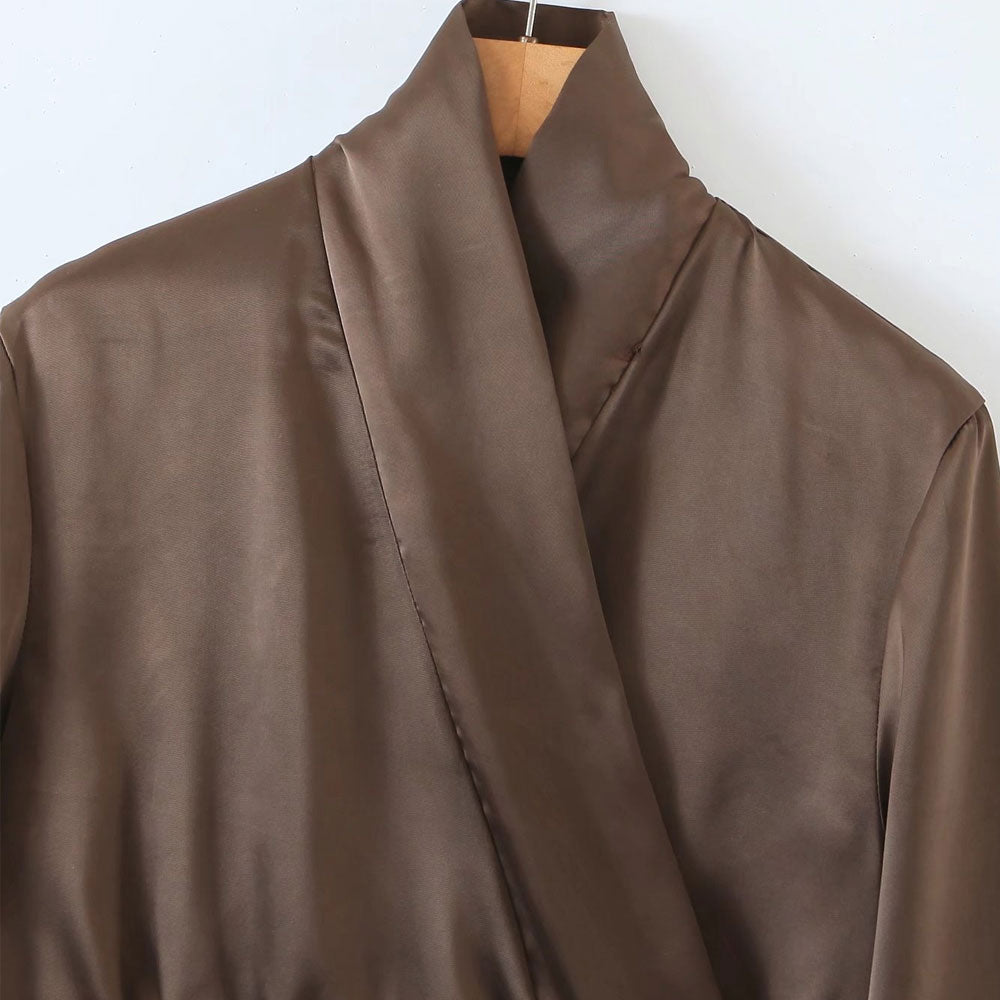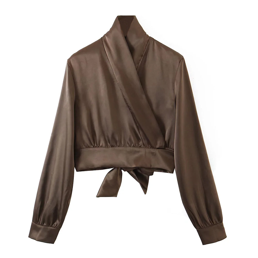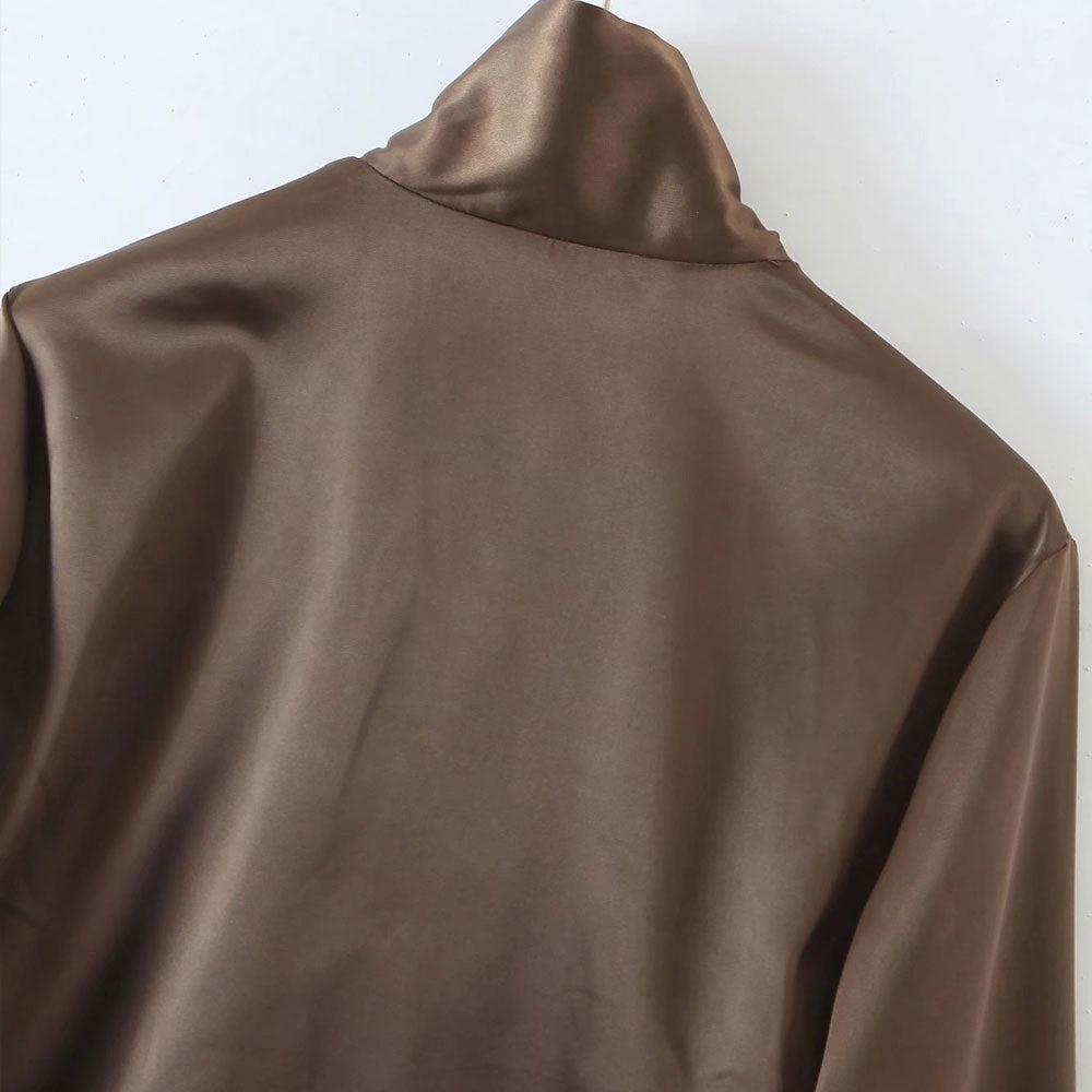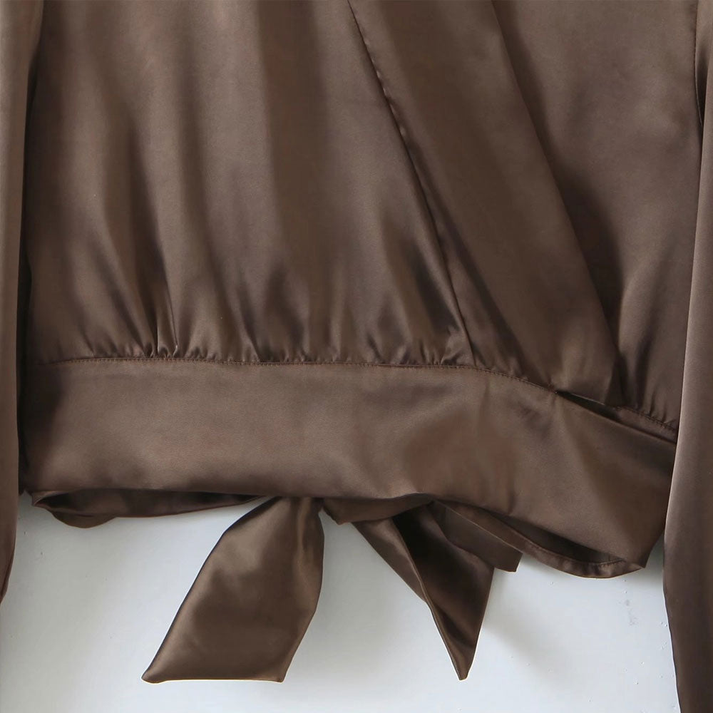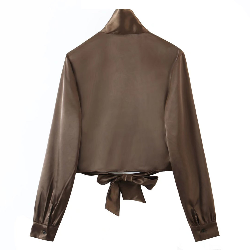 One of the most feminine pieces of clothing is a beautiful long sleeve blouse. This blouse has a cute bow tie decoration which makes it look glamorous. The shawl collar has a classic and elegant look which enhances the beauty of this blouse. This blouse is made from the finest quality fabric which lends a luxurious look to this blouse. It is a perfect choice for any formal occasion.
