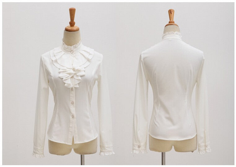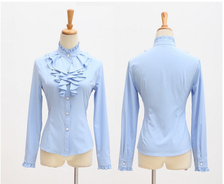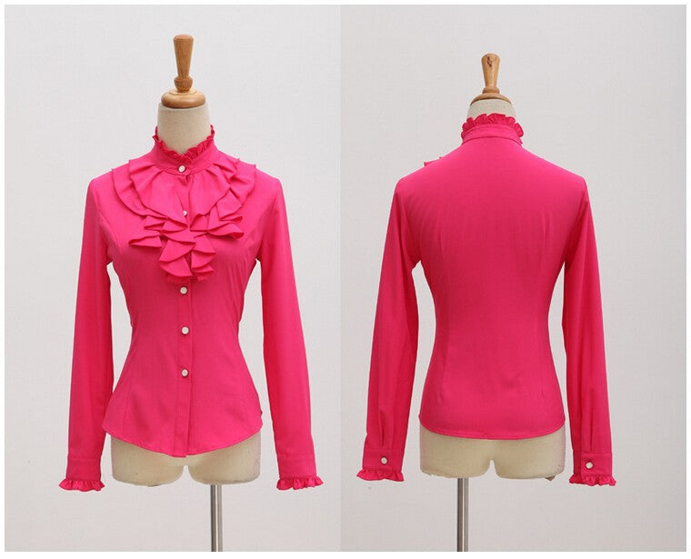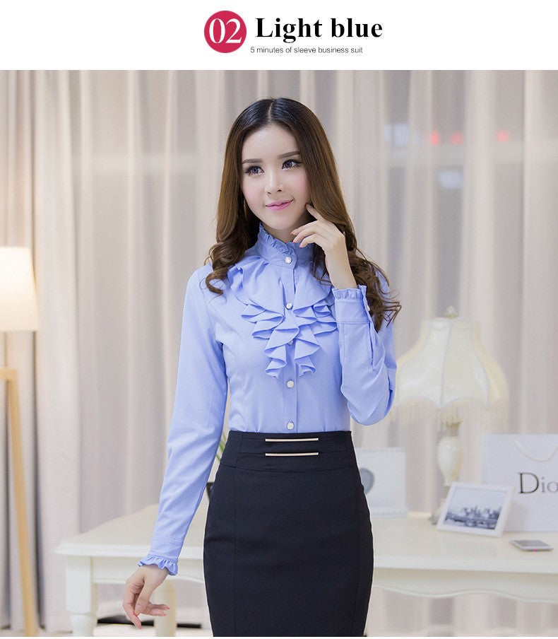 With a stylish and perfectly fitted silhouette, this versatile blouse can be worn with casual tops, or paired with a pencil skirt for a professional look. Its simple yet stylish design adds a touch of chic to your look. This blouse has a classic cut that is sure to become a staple piece in any fashionable wardrobe. The ruffled detailing on the front and the collar adds a flattering touch to this simple yet stylish design. This blouse is available in different colors and prints to match any personal style.