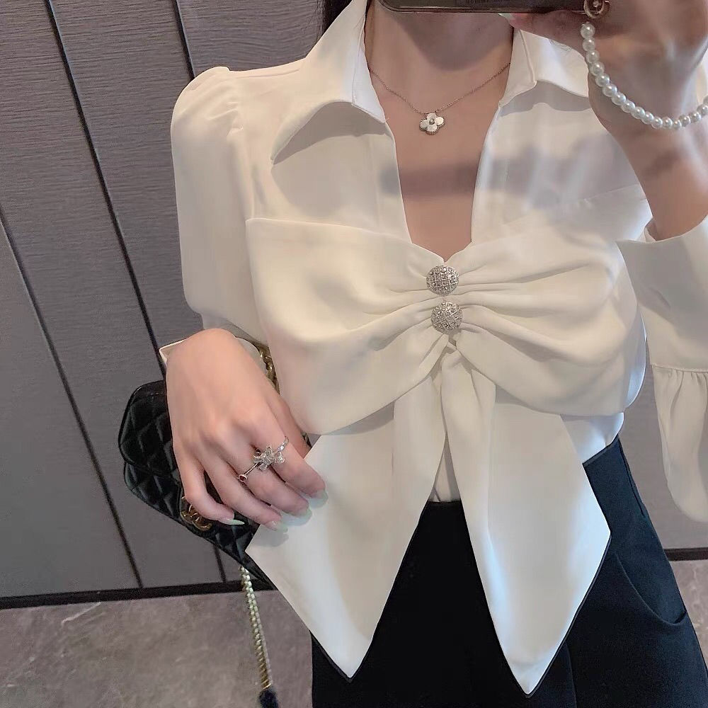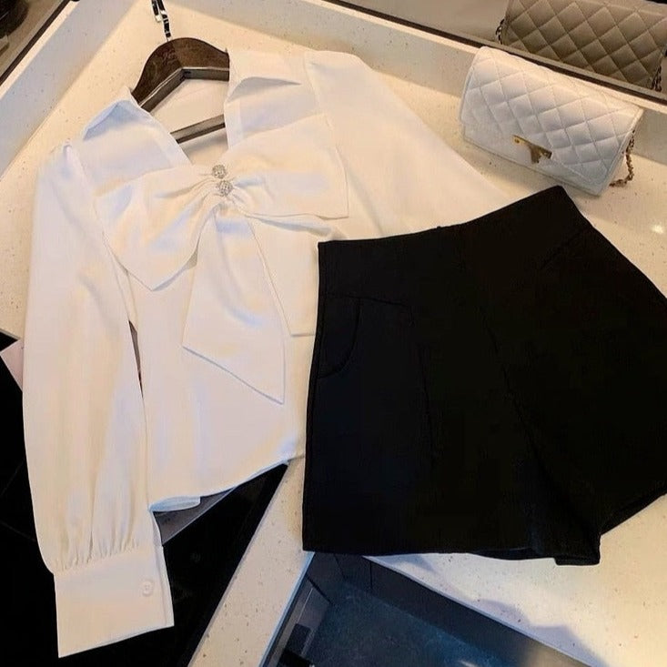 This stylish blouse will become your go-to piece for any occasion. The soft cotton materials make it comfortable to wear all day. The beautiful white color looks great with jeans, shorts, and more. The bow embellishment is sure to make her stand out. T