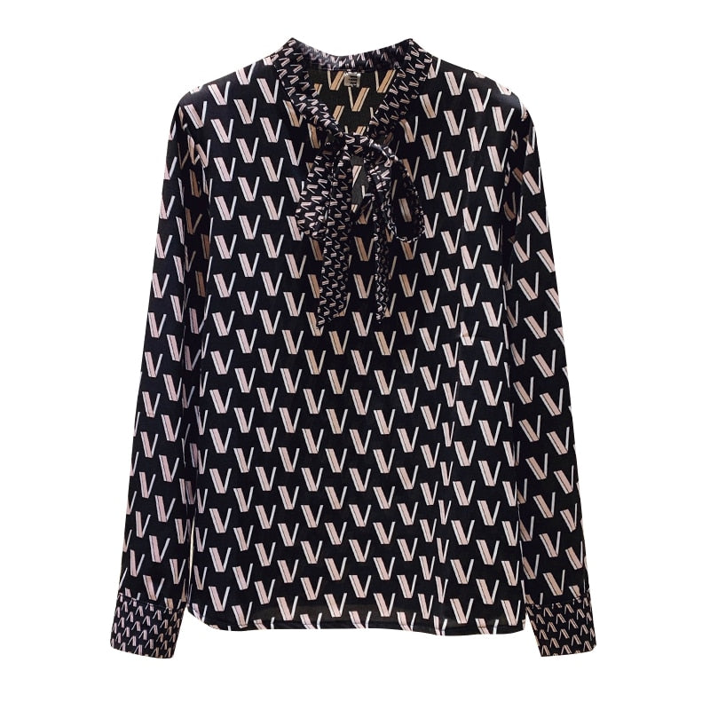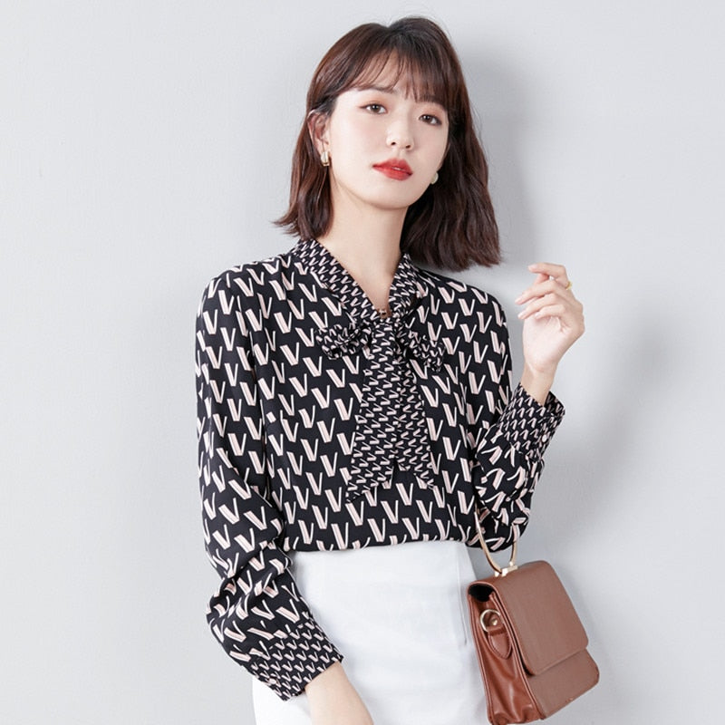 Blusa de poliéster de manga larga con patrón de letra V completa