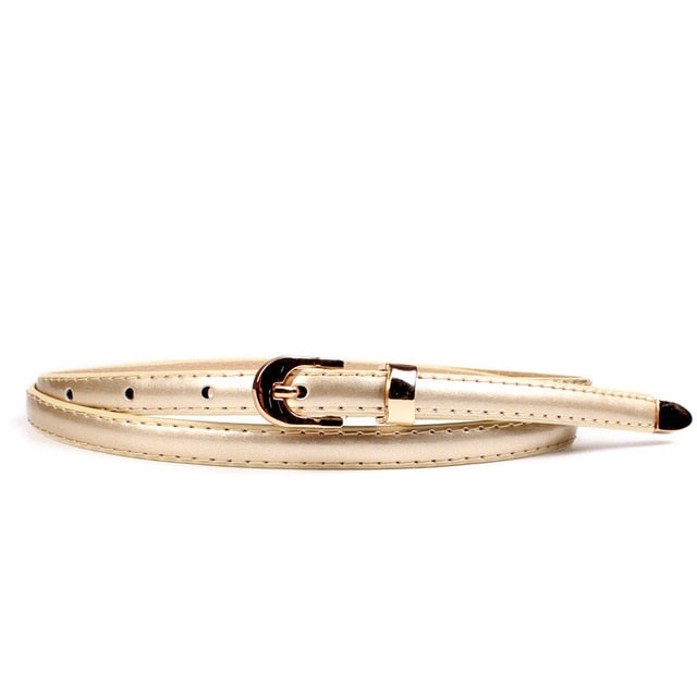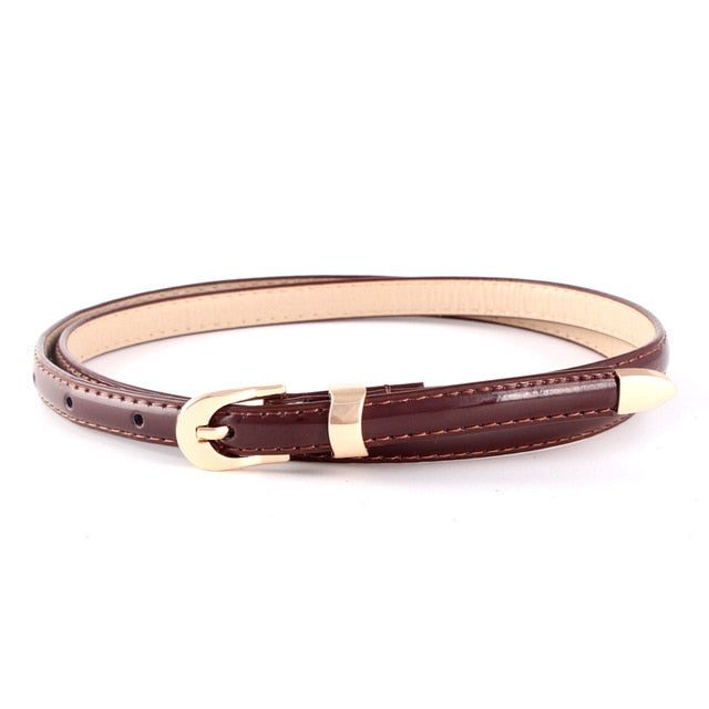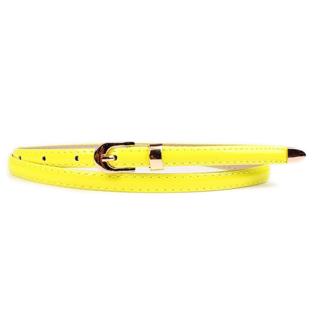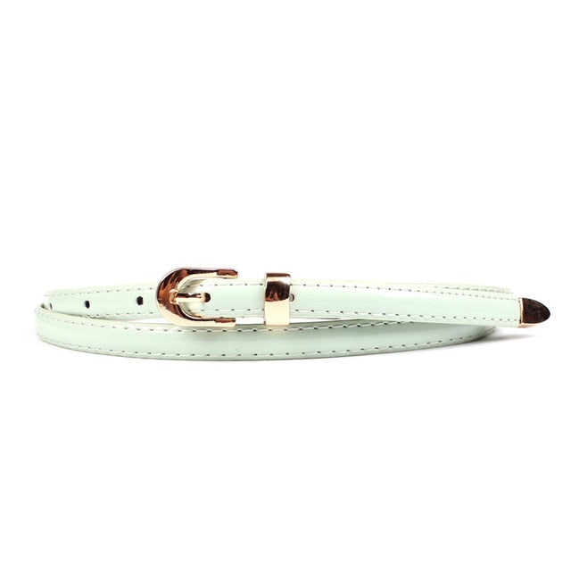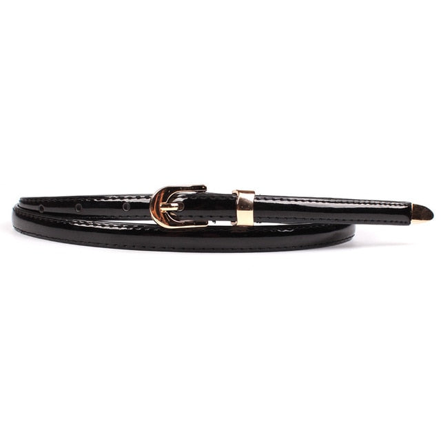 Cinturón fino de piel sintética maciza con hebilla de aleación