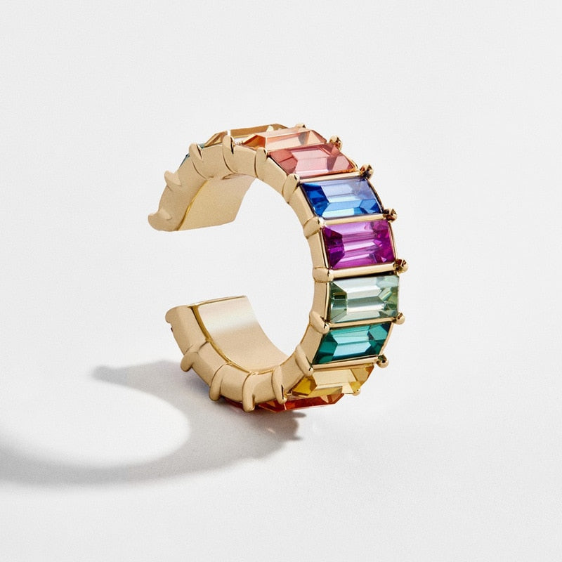 <transcy>Pendientes de clip con orejeras pequeñas de cristal CZ en forma de C de Lux Design</transcy>