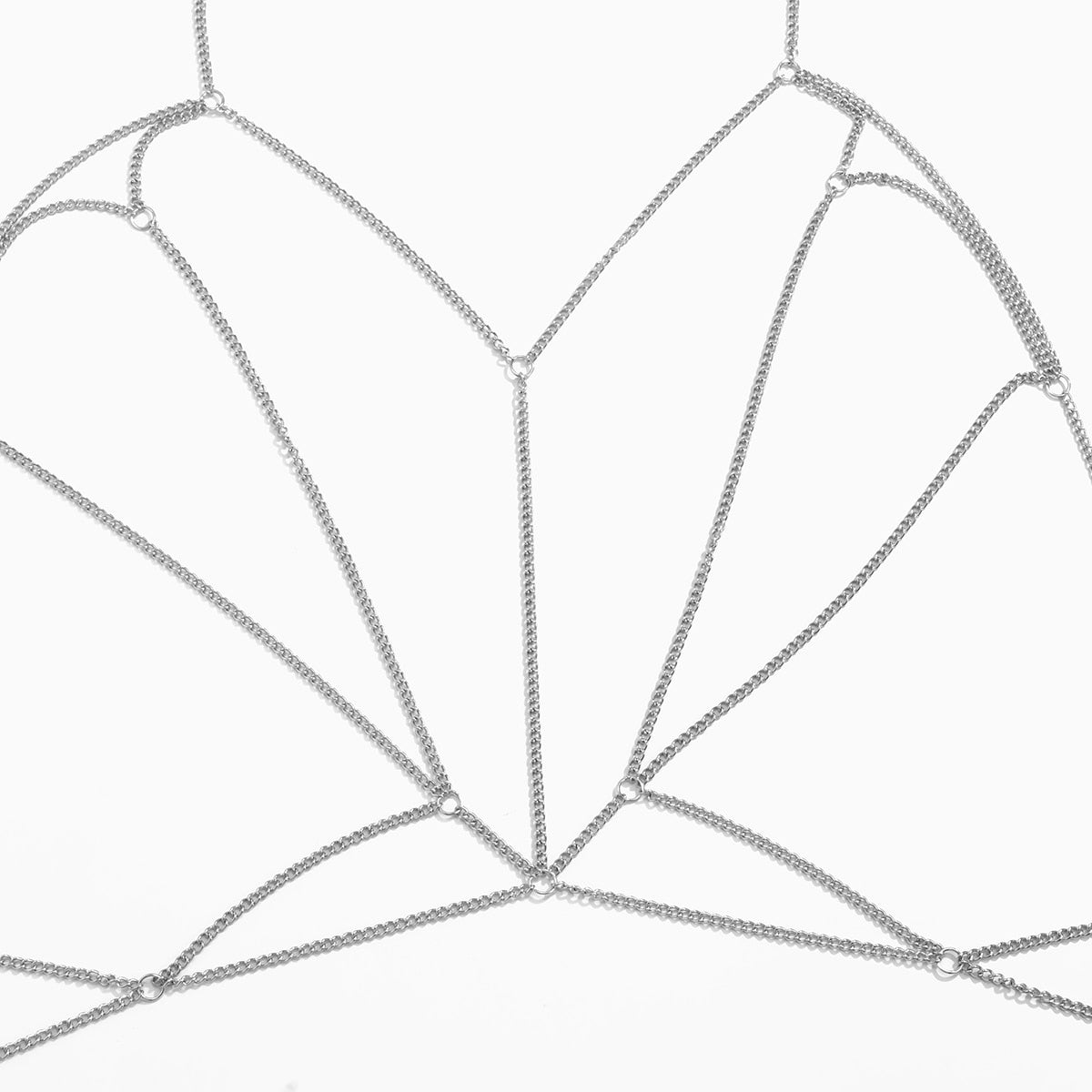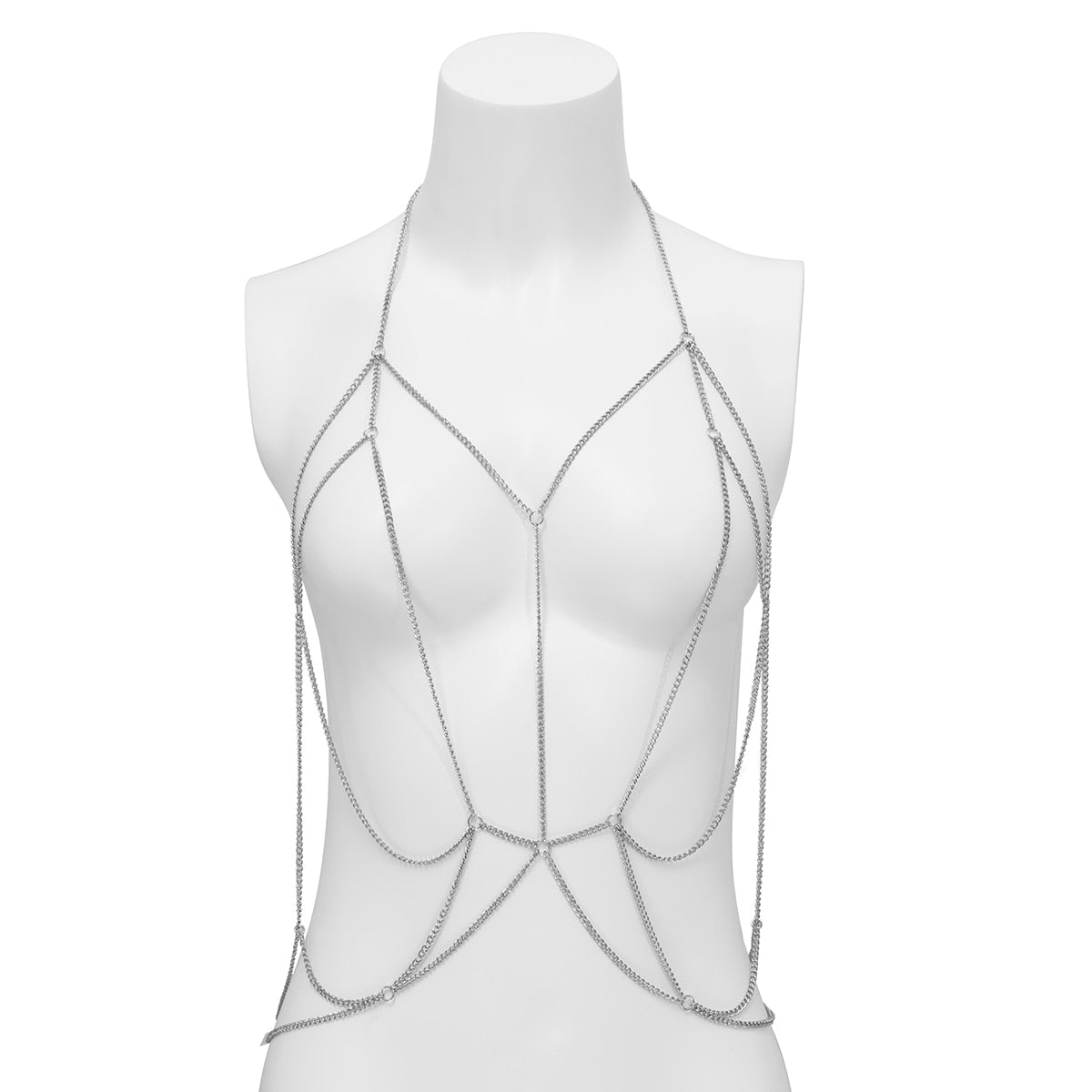It's time to add body jewelry to your collection. This body necklace is made of iron alloy. The basic chains are designed in a halter top. This piece will give you a dainty touch to your casual look.