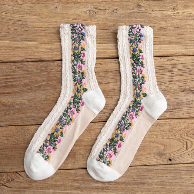 Calcetines tobilleros de algodón con estampado floral