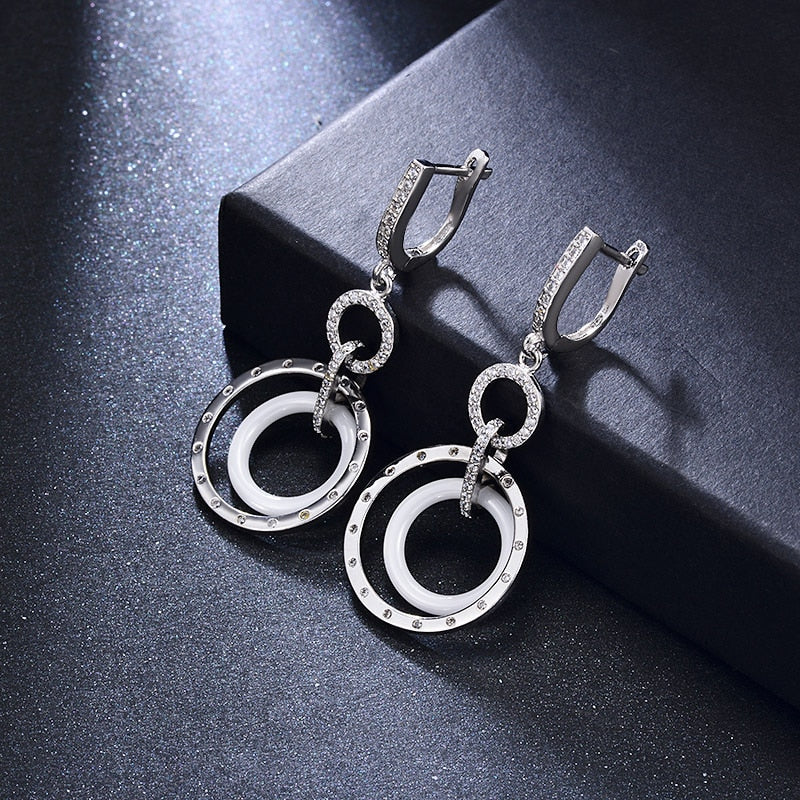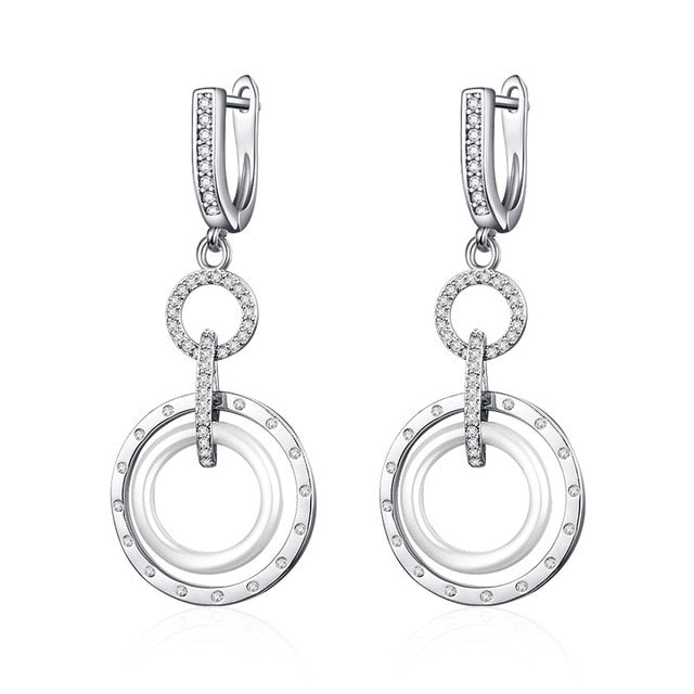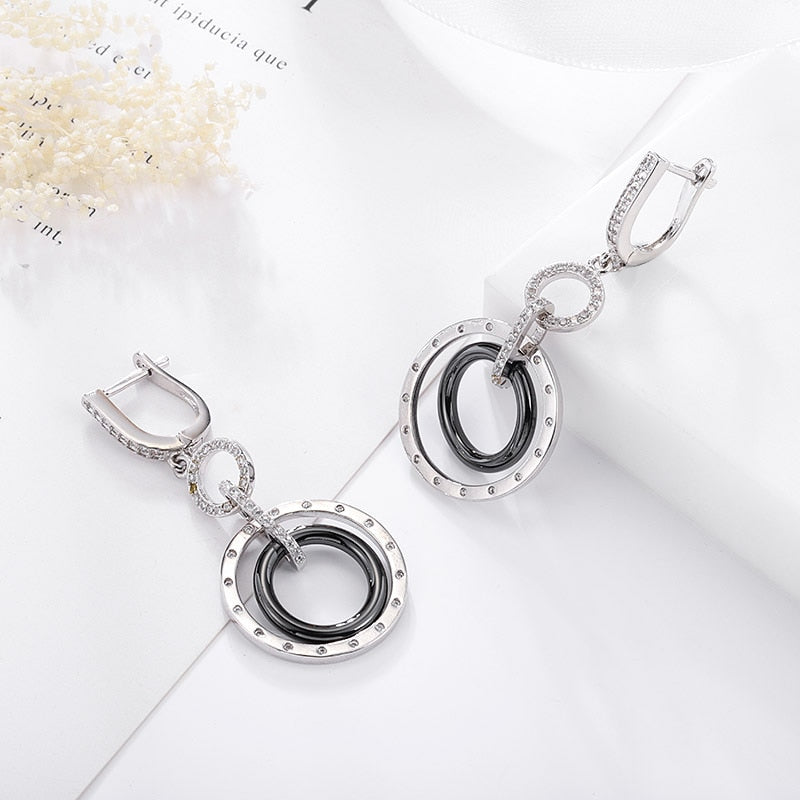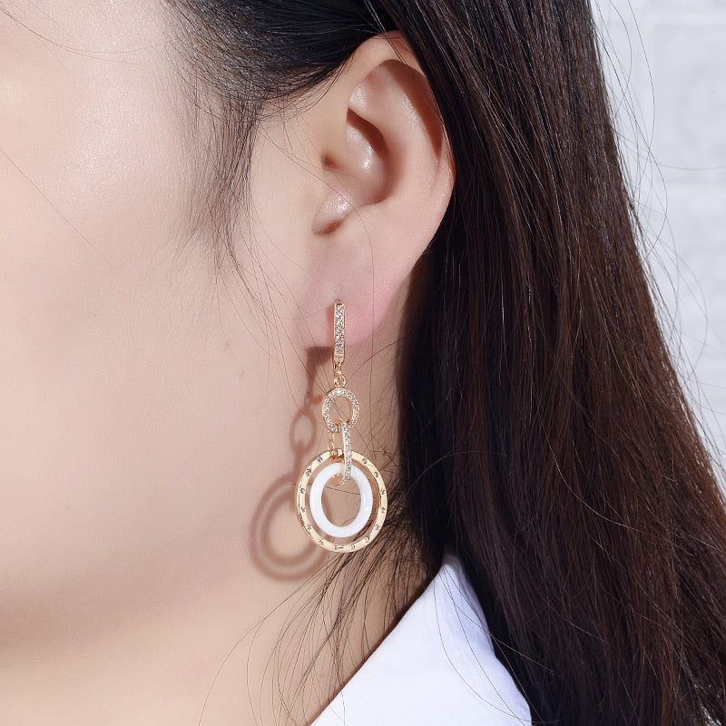 Aretes colgantes de cerámica, cobre, circonita y cierre con presión hacia atrás