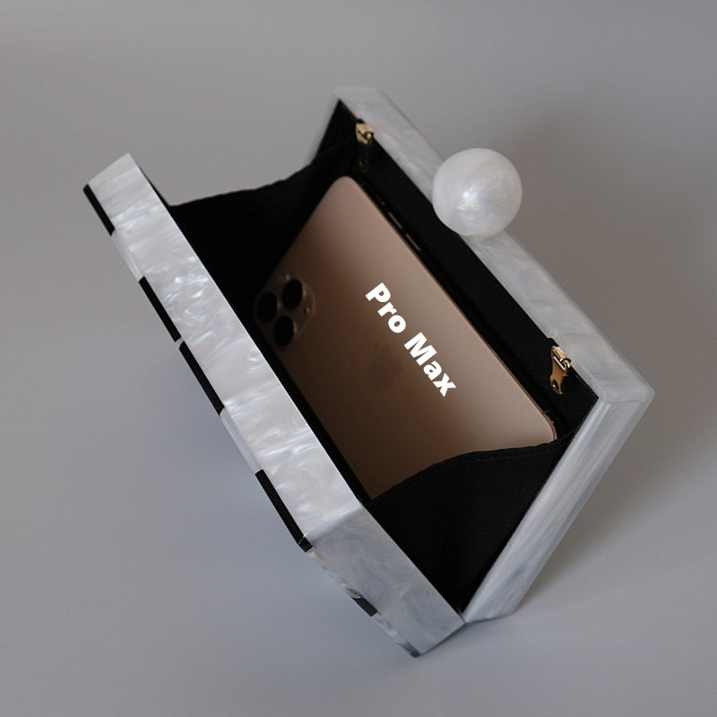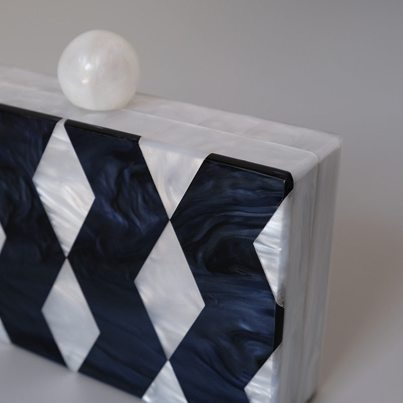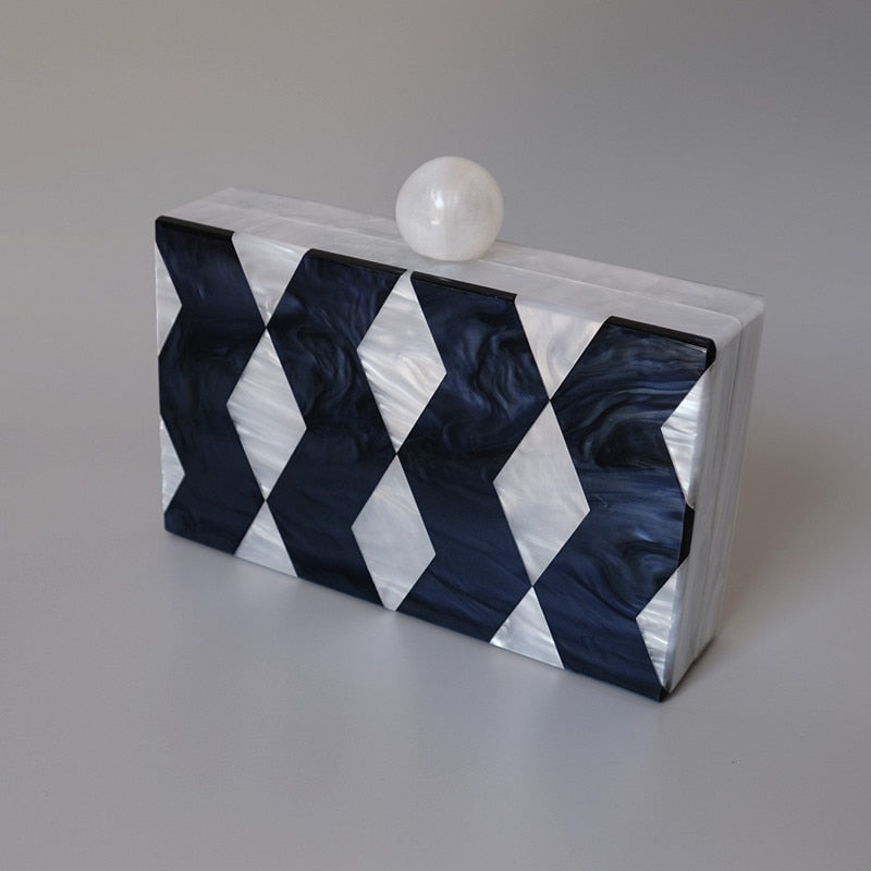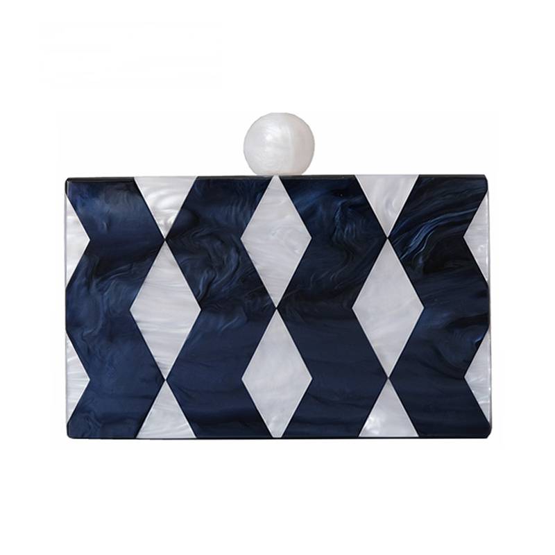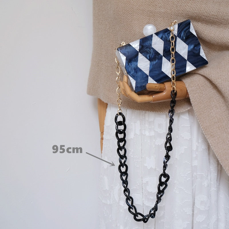 Clutch de PVC con cierre de pasador con patrón geométrico y correa de cadena desmontable