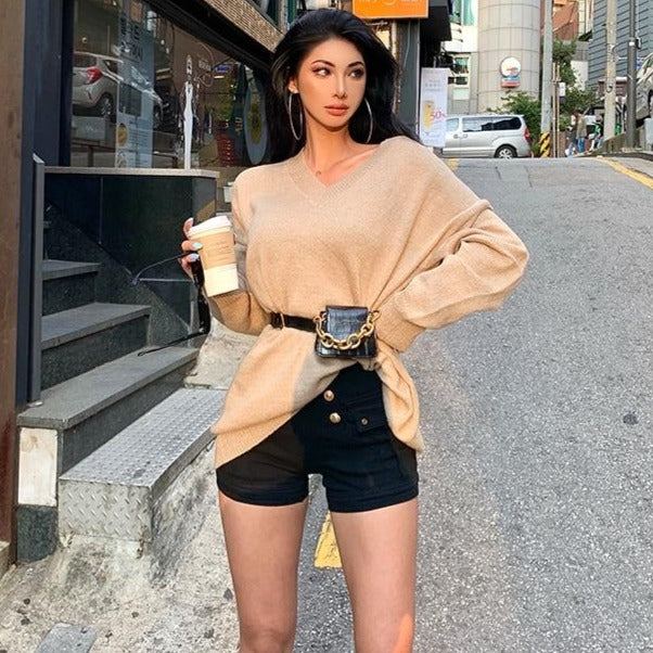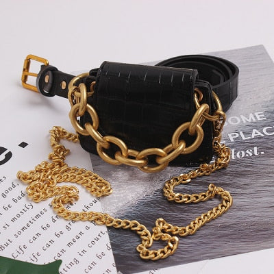 Riñonera de PU decorada con cadena y cierre de pasador. Se puede usar como riñonera en la cadera o en la cintura, o como bandolera.