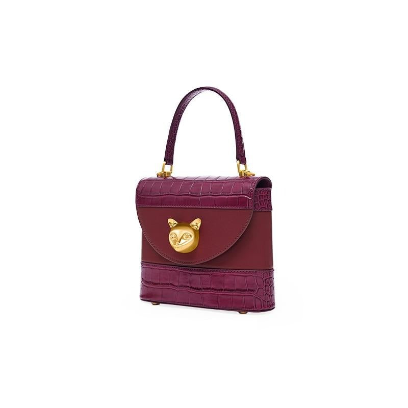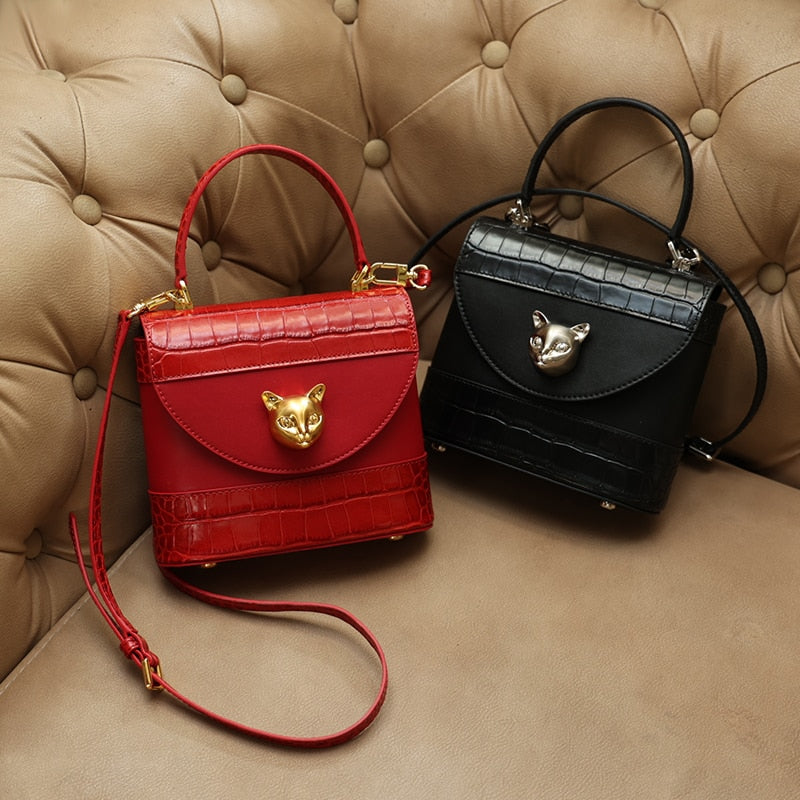 Bolso clásico con asa superior maciza y decoración de metal con cabeza de Lyon