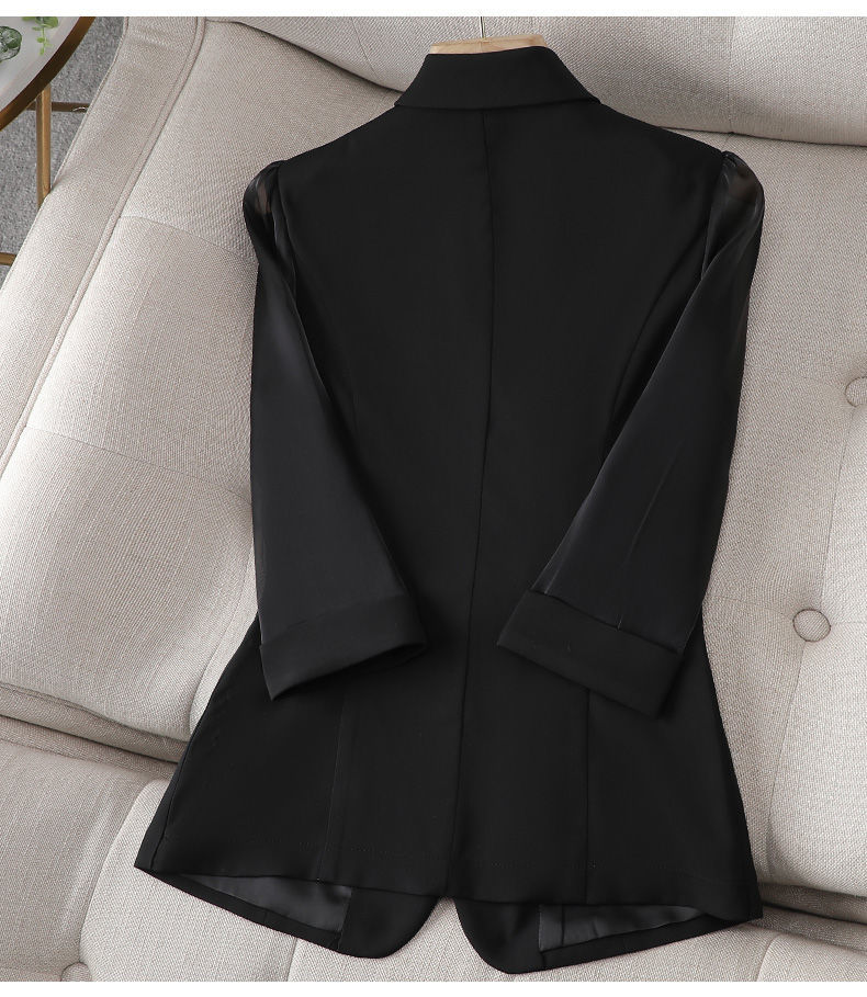 This three-quarter sleeve blazer is a must-have for any wardrobe. The turn-down collar and solid design allow for versatility and are perfect for a day at the office or a night out. Pair with a blouse and heels for a sleek and professional look.