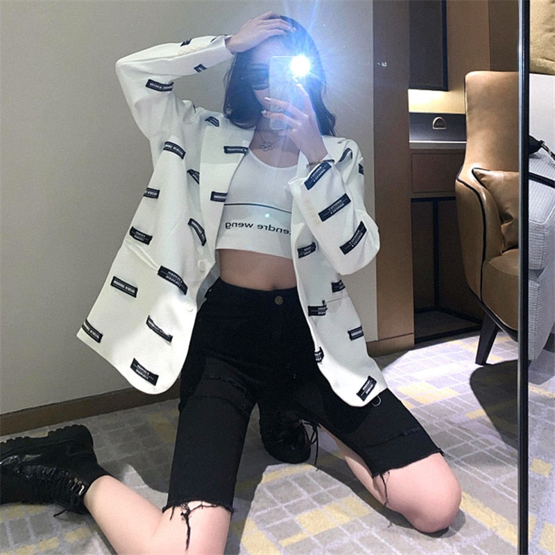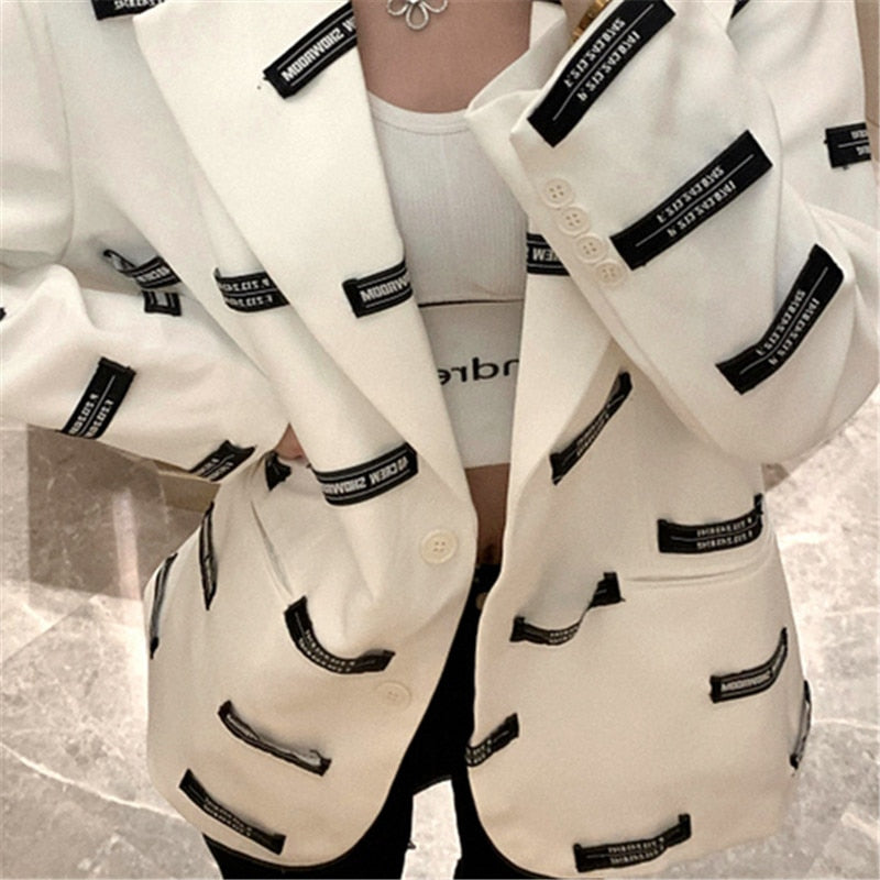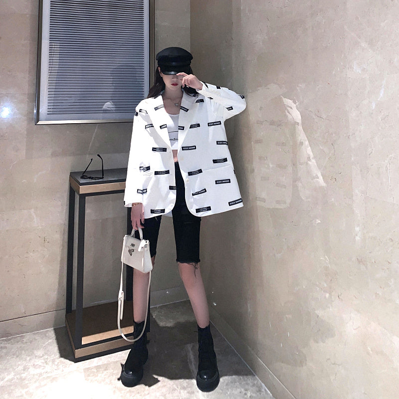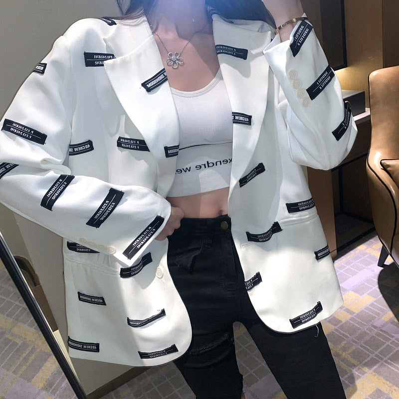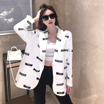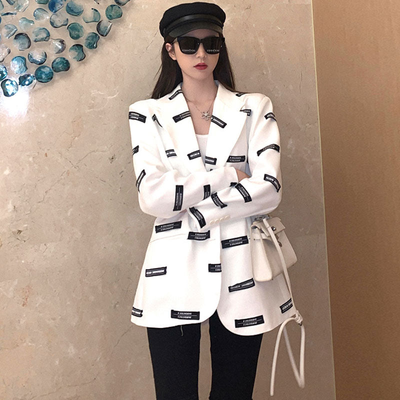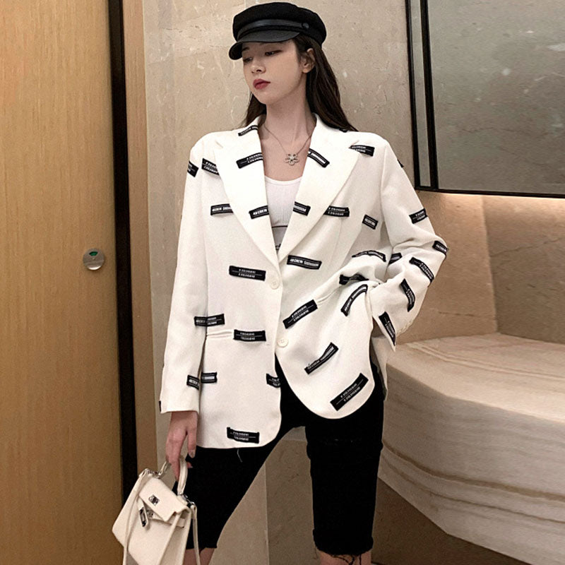Look like a professional from head to toe with this chic, yet casual blazer. The cotton fabric is light and airy, and the loose fit will be comfortable for any season. With a letter printed pattern and long sleeves, this blazer is perfect for work or play.