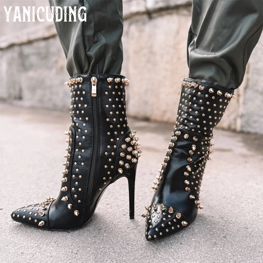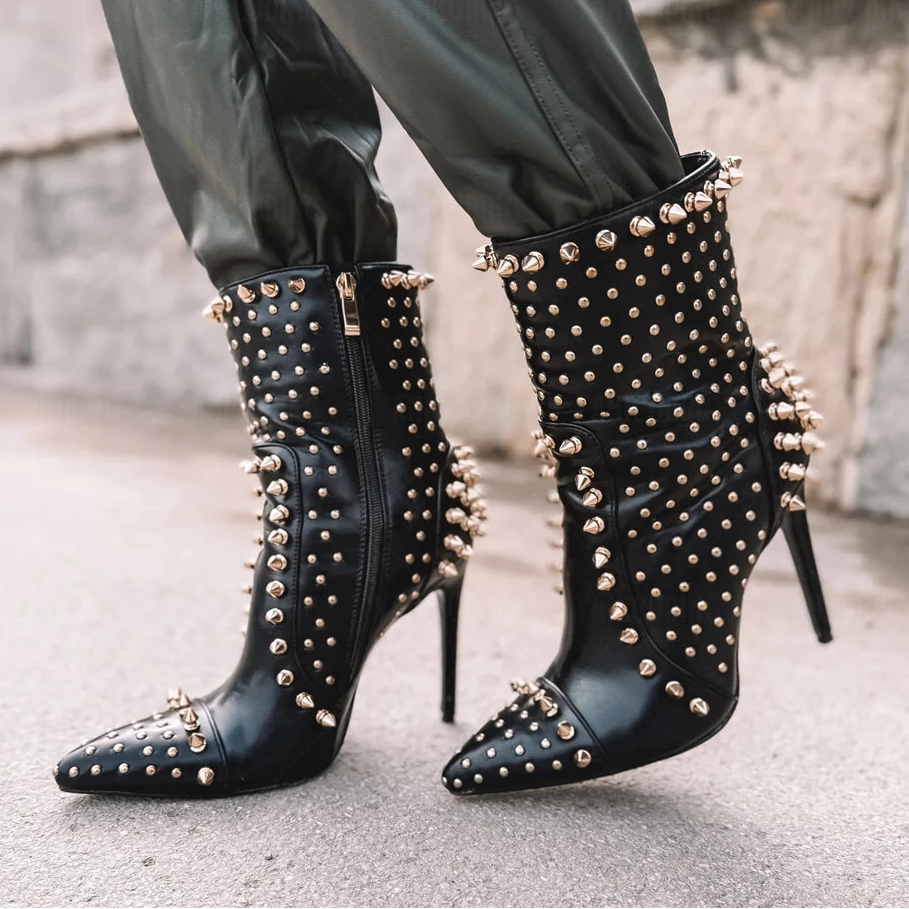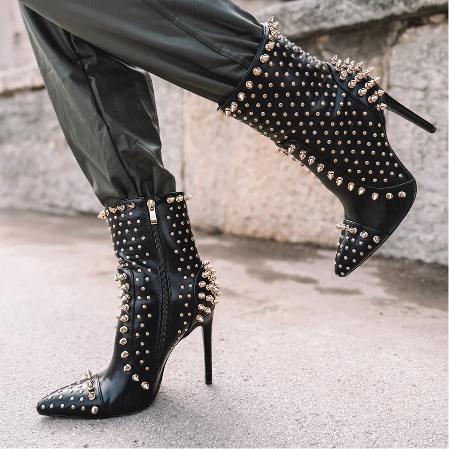 Make your mark with Lone Star Mid-Calf Boots, built for those who walk their own path. The edgy rivet detailing adorns a sleek PU upper, creating a rebellious aesthetic that refuses to whisper. Sharp pointed toes cut through convention with precision, while the mid-calf silhouette grounds your stance with authority.