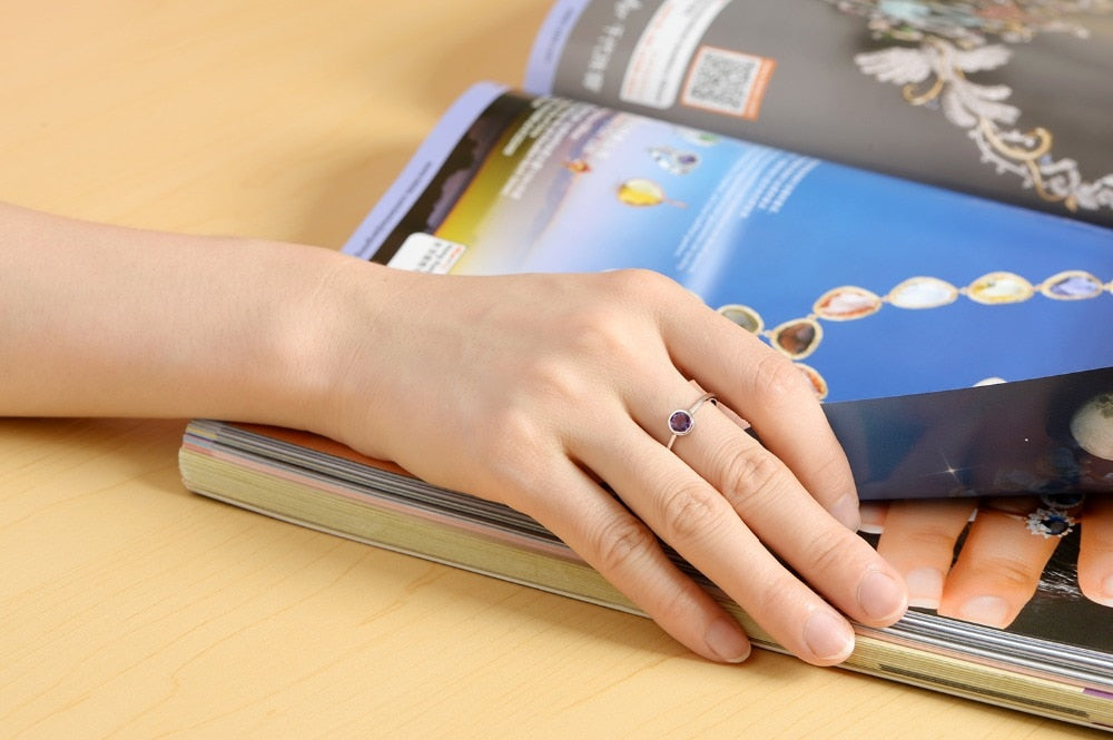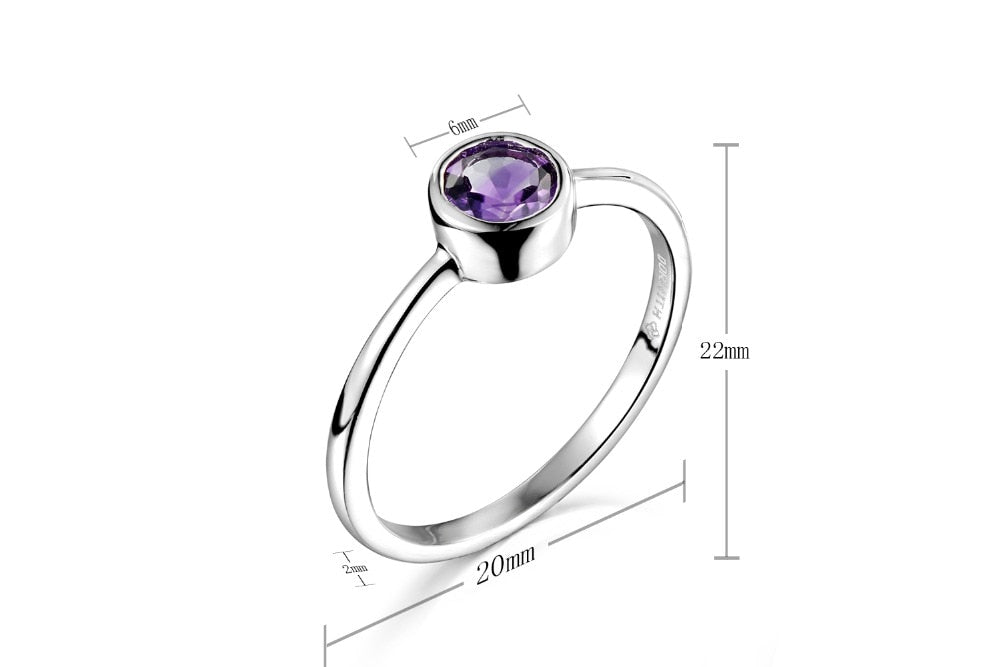<transcy>Auténtico anillo de plata de ley 925 con anillo de piedras preciosas de amatista natural</transcy>