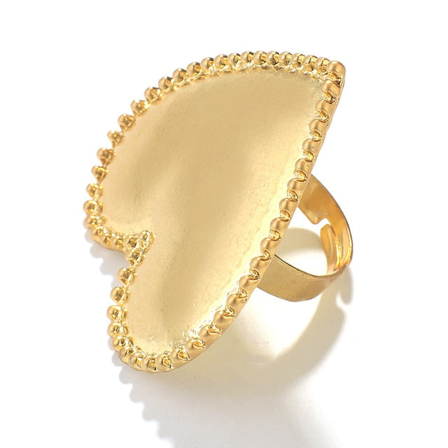 Anillo de aleación de zinc en forma de corazón de gran tamaño con engaste ajustable