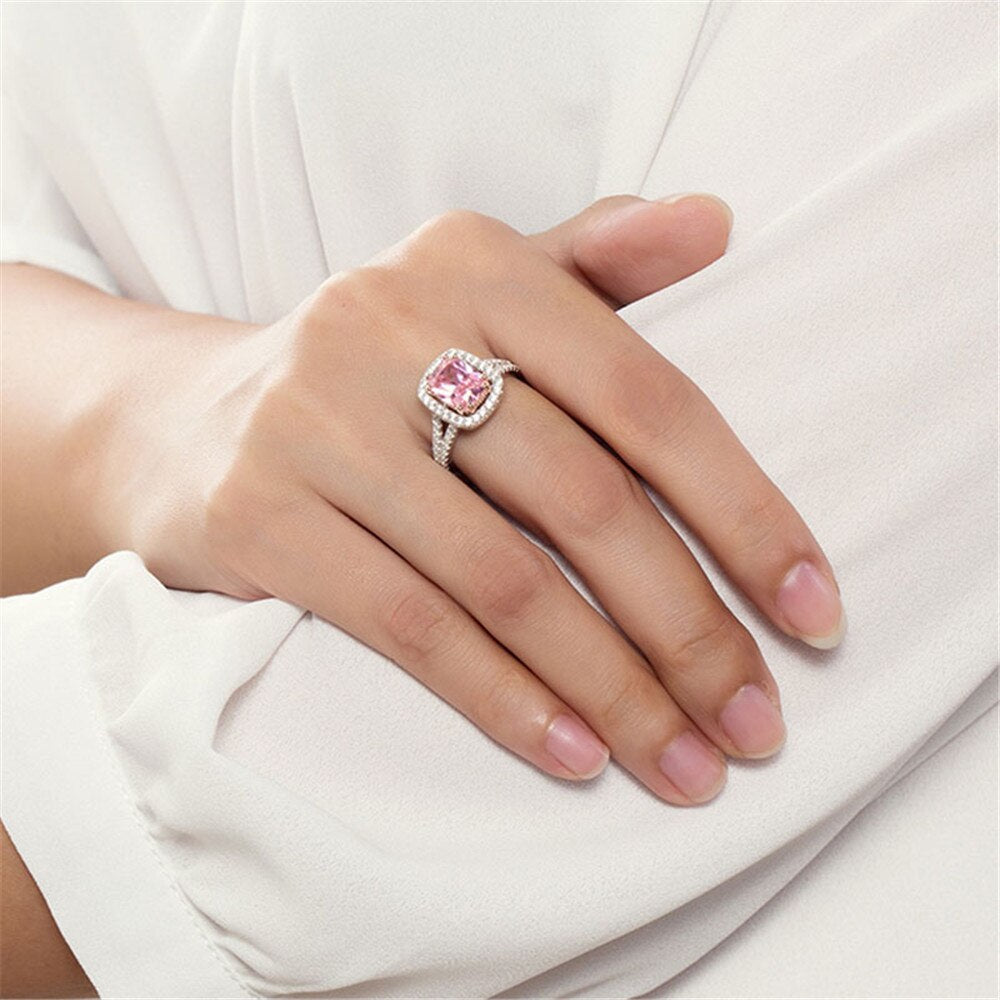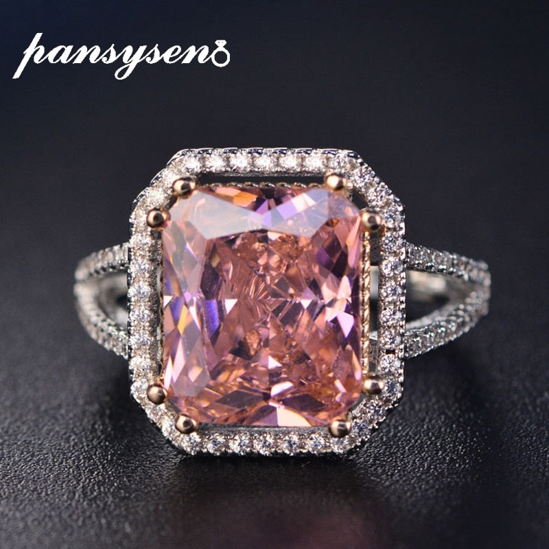 <transcy>Romántico diamante de espinela rosa con anillo de plata maciza 925</transcy>
