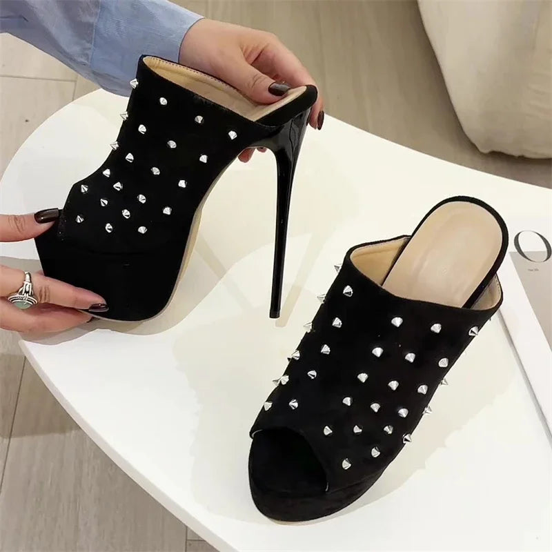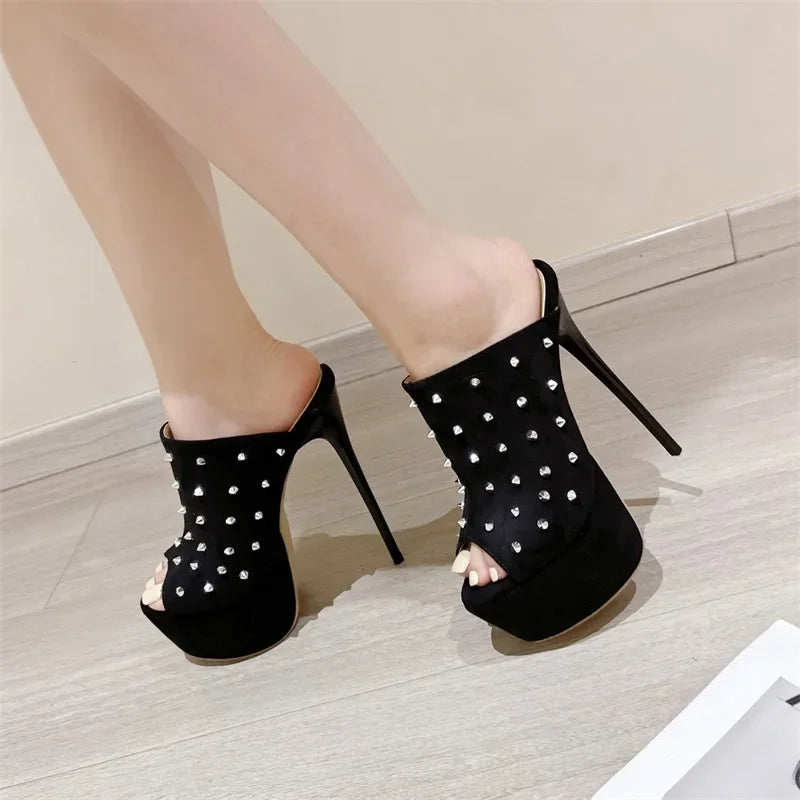 Step out boldly with the Detention Diva Stilettos. These daring sandals feature a sleek pull-on design for effortless wear, combining edgy style with confident comfort. Perfect for making a statement wherever you go.